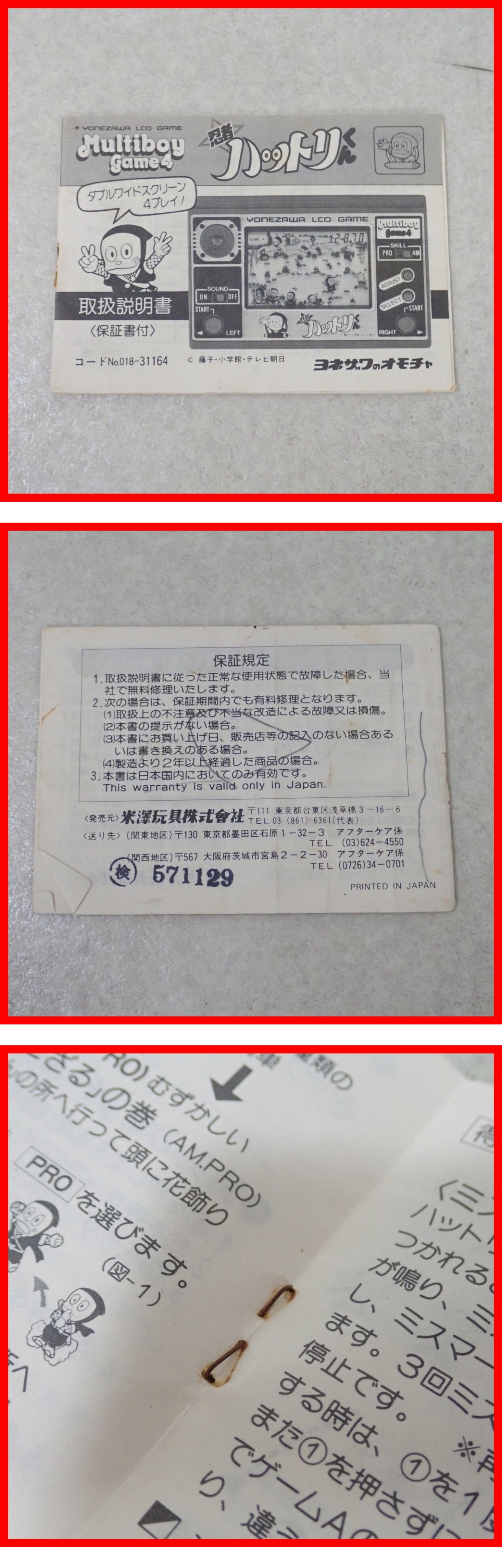| LSIゲーム 電子ゲーム YONEZAWA LCD GAME 忍者ハットリくん Multiboy game4 ヨネザワ 取説付 ジャンク ■ジャンク品として出品しておりますので、どの様な不具合が生じましても当店では交換・返金・返品等の対応はできません。 ■ご理解ご納得いただける方のみご入札をお願いいたします。 ■液晶不良、ボタン故障などのため、ジャンク品として出品致します。 ■取扱説明書にスレ、角スレ、イタミ、汚れ、折れ、ヤケ、書込み、ホチキス部のサビがあります。 ■本体にスレ、キズ、汚れ、ハゲがあります。 ■箱は付属致しません。 ■動作チェック・撮影に使用した以下のものは付属しません。 ・ボタン電池 ■商品の状態・セット内容につきましては写真をご確認ください。 ■一部を除いての発送は行っておりません。 ■写真のものが全てです。付属物の有無や状態については写真からご判断ください。 ■チェックに使用したモニターや機器等は、特に表記がないかぎりは付属いたしません。 ■古いものですので、当方のチェック時に動作を確認できたものでも、必ずしも商品到着後にも同じように動作することを保証するものではありません。 ■動作確認済み品で、一部のソフトだけが動かない場合など、ソフトと本体の相性による問題については当方の責任の範囲外となりますのであらかじめご了承ください。 ■中古品となりますのでソフトや本体等のメモリー、バックアップ電池等については動作を保証いたしかねます。 ■商品によりますが、発売されてから10年以上経過している中古品であることをご理解いただいた上でご入札をお願いいたします。なお、新品や美品、そのほか特記事項がある場合は別途明記します。 ■ご落札いただいた本体及び箱や取説、付属品、梱包材などは1つでも廃棄や破損をしないようにお願いいたします。 ■商品のご落札後、廃棄や破損をした場合、あるいは【修理や整備、カスタム、付属物の抜き取りやページの抜き取り/書込み等、ご落札者様の目的に応じて何らかの手が加えられた商品】に関しましては、問題があった場合でも対応や返金などの対処ができませんのでご注意ください。 |