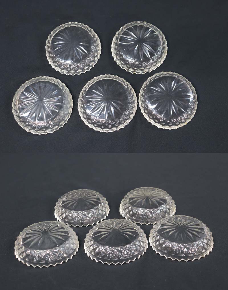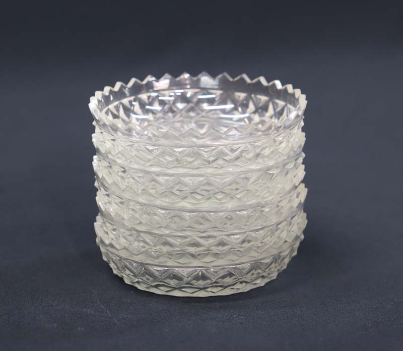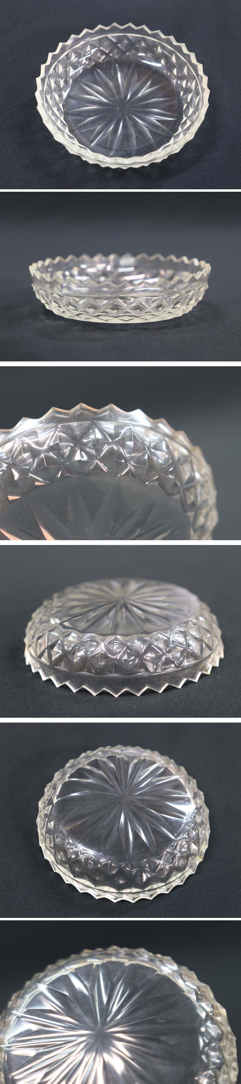 口縁は鋸歯状の切子、側面は霰文、底は十六菊の切子が施されています。