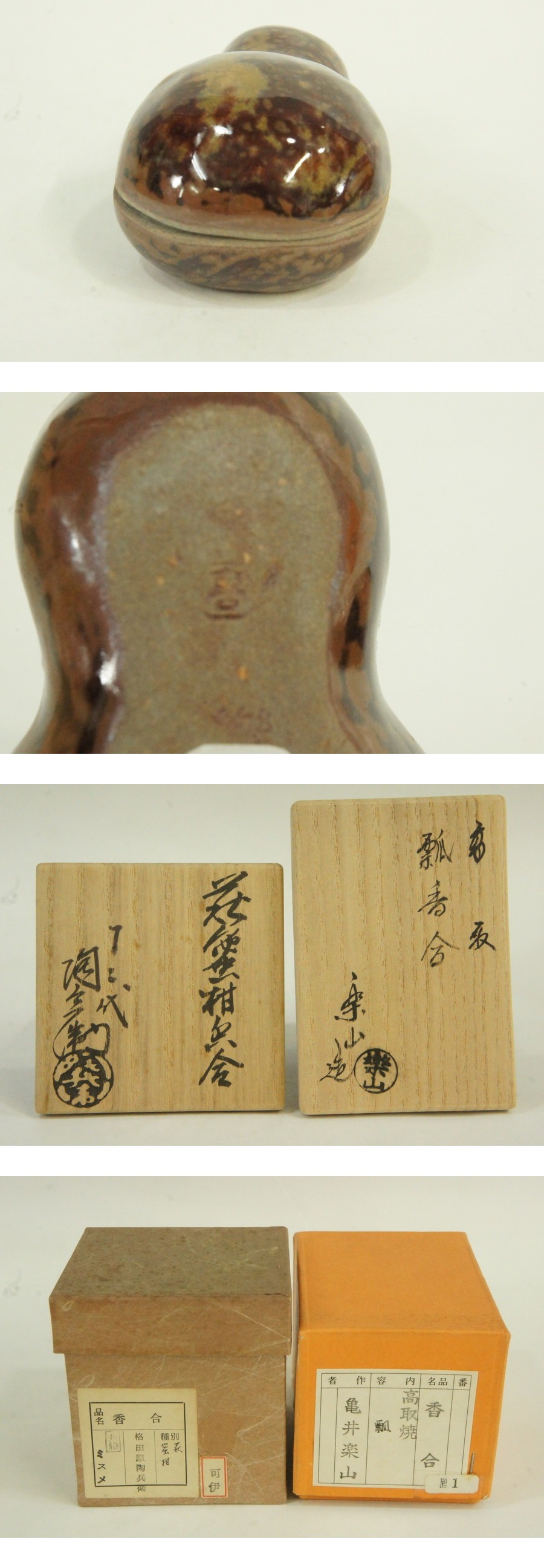 茶陶の陶芸家・十二代田原陶兵衛と亀井楽山による香合2点セットです。