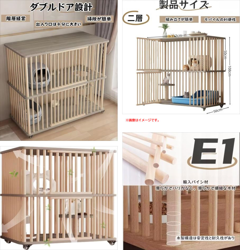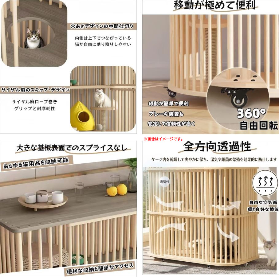 【商品特長】 ◆E1グレードの無垢材でできており、環境に優しく、スプレー塗料は使用していません。 木製構造は安定性と耐久性があり、猫の安全を確保すると同時に、 シンプルで温かみのある美的デザインを示し、家の環境に自然な雰囲気を加えます。 ◆安全性を考慮して設計されており、木製バーは適度な間隔で配置されており、 猫が引っかかったり逃げたりするのを防ぎます。同時に、内部の通気性は非常に良好で、 空気が自由に流通し、ケージ内を乾燥して爽やかに保ち、湿気や細菌の繁殖を効果的に防止します。 ◆ケージの内部は広々としており、設計も合理的です。猫、子犬、ウサギなど多種類の小型ペットに 同時に使用することができ、ペットは混雑を避け、中で自由に活動することができます。 ◆底部には4つの360 度自在に回転するキャスターが装備されており、移動が非常に簡単で便利であり、 床を傷つけることは全くありません。そして、キャスターにはブレーキ装置も備わっています。 固定した後は極めて安定して信頼性が高く、簡単に動くことはないため、あなたのペットの安全を確実に守ります。 | |||||||||
