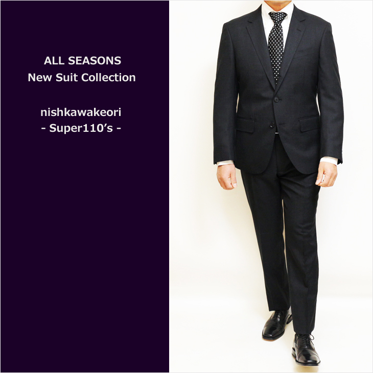 | 品名 | 新品 春夏秋冬 通年モデル 西川毛織 Super110's 3つボタン段返スーツ(スリム型) | |||||||||||