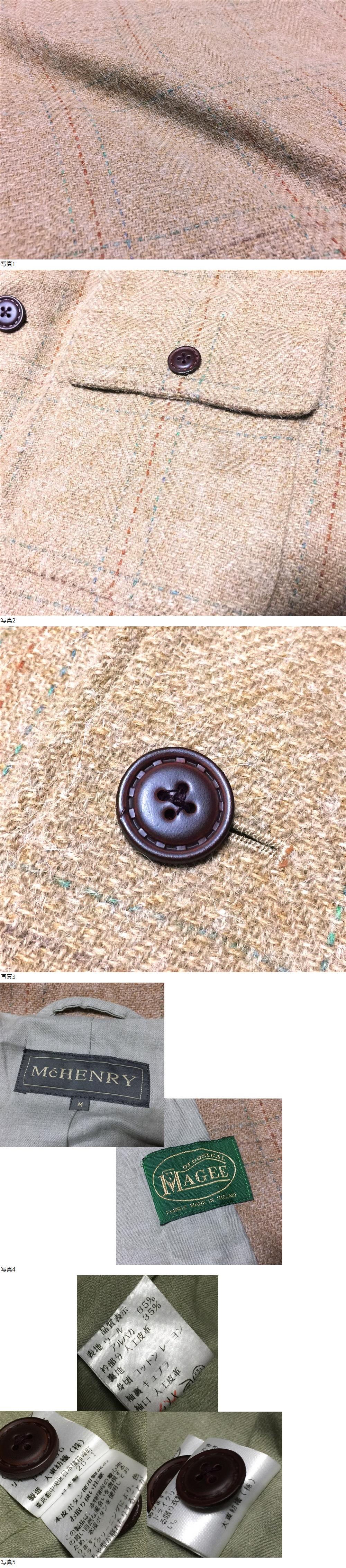 | 【ブランド】 McHENRY マックヘンリー × MAGEE マギー アイルランド製のMAGEE(マギー)は、ドネガルツイードを代表する生地ブランドです。1866年にジョン・マギーが創業し、アイルランド北西部のドニゴール地方でホームスパンの手織りツイード生地の販売を始めました。MAGEEは現在、5世代にわたるテンプル一族によって経営されており、ドニゴールで生地生産と衣料品企画を行っています。MAGEEのツイードは、自然な色合いと耐久性、豊富な色柄で高く評価されており、世界中にファンがいます。 【デザイン・モデル】 アルパカ&ウール ドネガルツイード ジャケット 【生産】 大東紡織㈱ 日本製 【詳細・コメント】 McHENRY マックヘンリー ツイードジャケットになります。精度の高い日本のファクトリーで縫製したマクヘンリー渾身の一着です。アイルランドの高級服地ブランドMAGEE社のウール&アルパカのドネガルツイード生地を使用、ふんわり柔らかく希少故に高価なアルパカ混ウールは軽さと防寒製を兼ね備えた機能美素材。上品なベージュ系カラーにボタンはレザー製ボタン、襟は合皮レザーの切替、ゆったり目のシルエットで雰囲気ある着こなしを楽しんでいただけます。 正規品です。 【サイズ】 表記: M ※実寸を参考にして下さい。 平置実寸:身幅58㎝ 着丈77cm 肩幅50㎝ 袖丈60㎝ ※多少の誤差はご了承ください。 【カラー・パターン】 ベージュ系 チェック柄 ※ご覧になられるモニターや、デジカメの撮影具合によって色味が異なる場合がございますのであらかじめご了承ください。 【品質】 表地:ウール65% アルパカ35% 衿部分:人口皮革 裏地:(身頃)コットン レーヨン (袖裏)キュプラ 【コンディション】 USED 中古品 です。多少使用感ございますが、目立ったダメージなくきれいです。まだまだ着ていただけます!※写真参考に判断して下さい。ユーズドアイテムにご理解ある方のみご入札お願い致します 。 | |||