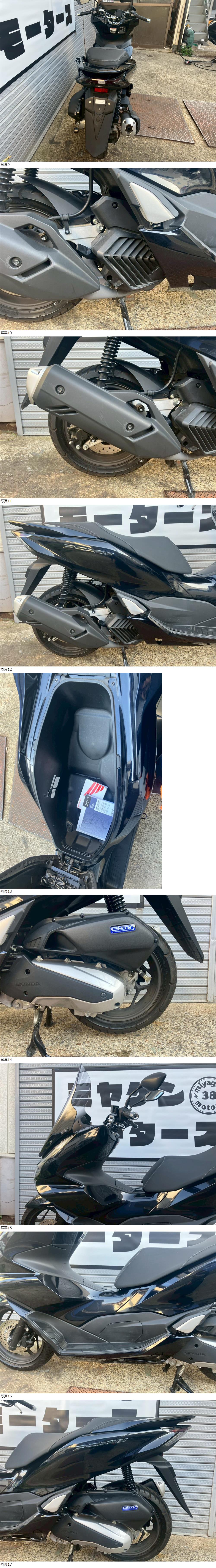 | 商品説明 | この度は当出品車両をご覧頂きまして誠に有難う御座います。 他にも複数台出品がございますので宜しければご覧ください! ご入札頂けた際には文末にありますお取引詳細にご同意頂けたものとさせて頂きます。 下記車両詳細・お取引詳細になりますので必ずご一読くださいませ! また、直接お越しいただいた方にその場で販売することもあるため予告なしに出品の取り消し等をする場合も御座います。 よって、落札前には一言コメント欄にてご一報頂けますと幸いです。予めご了承下さい。 〜〜車両詳細〜〜 メーカー:ホンダ 車種:PCX160 色: 黒 鍵:純正スマートキー2つ 排気量:160cc 走行距離:7,531km 燃料供給装置:インジェクション フレームNo:KF47-110XXX ・外観 ☆右フロント側に転倒傷の跡がありますので現車確認をお勧め致します。 ・エンジンセルにて始動O K! 吹け上がり良好! 確認箇所は以下となります。 スピードメーター:作動OK! ヘッドライト:ハイロー点灯! ウィンカー:前後左右点灯! テール:尾灯・ブレーキ共に点灯! ナンバー灯:点灯! ホーン:作動OK! ★別途部品交換受け付けます! ・タイヤ前後交換など!詳細は直接お問い合わせくださいませ! エンジンオイル・タイヤ交換など! 詳細は直接お問い合わせくださいませ! *上記ご利用の際は部品の在庫状況によりお引き渡しまでにお時間を頂戴する場合が御座います。 〜〜お取引詳細〜〜 ※ご注意ください※ 出品車両はあくまで現状販売となります。走行点検などは行っておりません。 良好・好印象などの表記に関しても車両の状態を確実に保証するものではなく 細かい程度の差なども含めあくまで当方の主観でありますこと重々ご承知置き下さい。 特別に気になる箇所など(外観に限ります)がある場合は直接ご相談ください。 ご指定いただきました箇所のお写真を添付をさせていただきます。 (あまりにも多い場合はご対応致しかねます。) 上記を踏まえまして現車の確認は大歓迎です。 細かい箇所など気になる方は是非とも現車確認を行ってください! (予約制となりますので直接お問い合わせください。) 一般の二輪販売店と同様の点検・整備は行っておりません。 車両に関する一切の保証等も御座いませんので自走でのお引き取りはお断り致します。 ある程度の知識があり落札後にご自身で整備の出来る方、或いは整備工場等にて分解整備を別途検討できる方、メンテナンスベースとしての使用などの落札を推奨しております。 明記してあること以外の確認はしておらず、また致しかねます。 目視できる消耗品以外のパーツに関しましても寿命のわからぬものなど御座います。 (中古品ですのでつい先程まで正常に作動していたにも関わらずお受け取りの際に状態の変化などある場合も十分御座います。例・電子機器、ワイヤー類など) 再三にはなりますが如何なる場合もお引き渡し後のキャンセル・クレームはお受け致しかねます。 現状販売というものを重々ご理解の上ノークレーム・ノーリターンでよろしくお願い致します。 原則キャンセルはお受け致しかねますが、止むを得ず落札者様都合でキャンセルされる場合には 落札金額の1割をキャンセル費用として頂戴させて頂きます。 上記取引内容に不安を感じられる方には二輪販売店等の整備・保証付き車両のご購入を強くお勧め致します。 ★登録代行代+ナンバー+自賠責12か月分が含まれた料金となっております。 ★直接引き取り・即引き取り大歓迎! 直接引き取りの場合、落札から1週間以内にお引き取り下さい。 それ以降日割りにて2,200円を別途頂戴させて頂きます。 *部品交換をご依頼の方は完成のご連絡から1週間以内となります。 ★配送OK! 主に配送業者に委託しております。ご自身で手配いただいても結構です。 レッドラインの金額を参考にしておりますのでお手数ですが費用に関しましては落札者様にて直接HPでご確認下さい。 発送元は埼玉県川口市となります。ご購入から配送までの目安は関東近郊で1〜2週間程度となるかと思います。(地域、期間により大幅に異なりますので納期が気になる方は直接レッドラインへお問い合わせ下さい。) 関東近郊の場合割増でお早めにお届けできる場合も御座いますので一度ご相談下さいませ!(対象外となる場合も御座います。) また、配送の場合もお取置き等の対応は致しかねますので落札後は速やかに配送依頼の手続きを行わせて頂きます。 ★新規アカウントの方、落札者様の評価内容によりましては、ご入札頂いても当方の判断で削除する場合がございます。予めご了承下さい。 ★落札後、24時間以内にお客様情報のご入力・落札代金のお支払いがいただけない方のお取引はキャンセルとさせていただきます。(お支払いに関しましては、どうしてもの場合大幅な期間でなければある程度ご相談にのらせていただきます。) 予めご了承くださいませ。 上記内容にご同意いただける方のみ、落札をご検討ください。 気持ちの良いお取引ができますようどうぞ宜