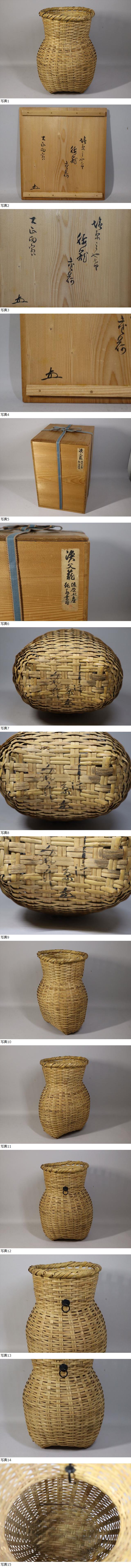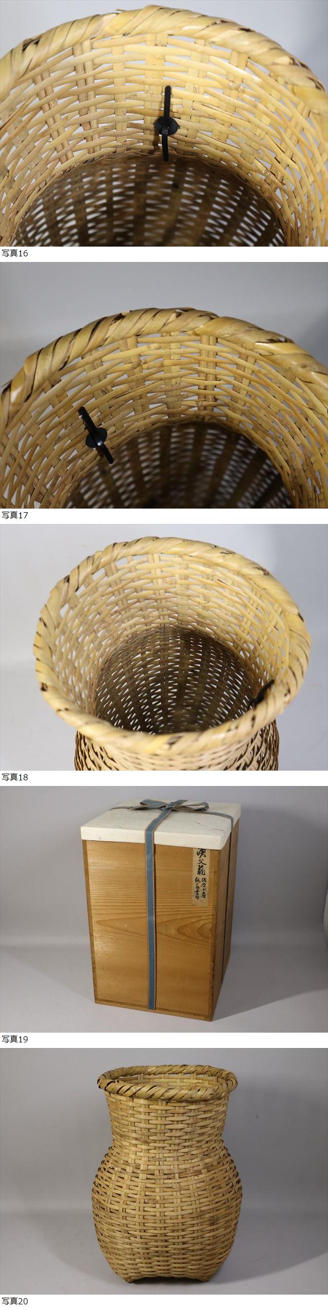 本物保証。益田鈍翁書付在判 塩原土産漁夫籠花入 大正15年箱書です。作品にも塩原土産 鈍翁(花押)があります。古作ですので経年のいたみはありますが全体的には状態良好です。
