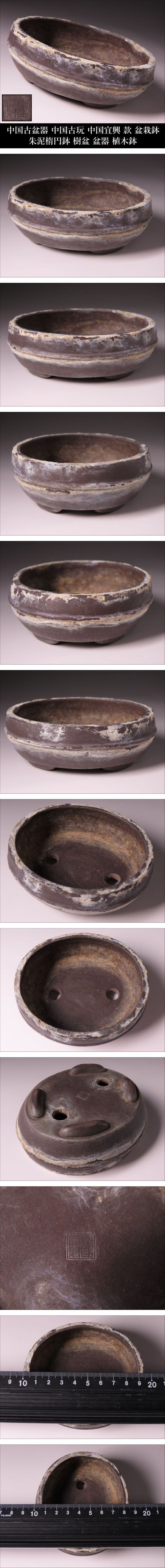 【ONE'S】中国古盆器 中国古玩 中国宜興 款 朱泥楕円鉢 盆栽鉢 植木鉢 樹盆 盆器 幅9.8cm 古美術品 | |||