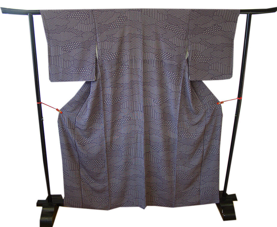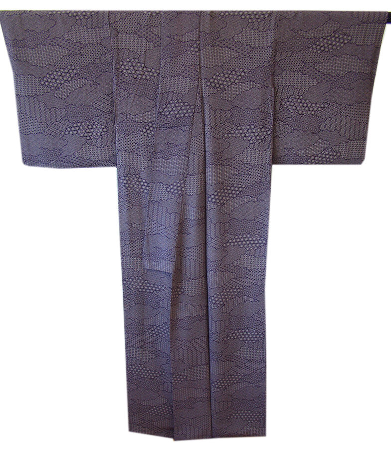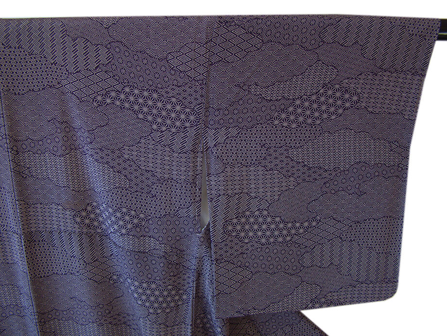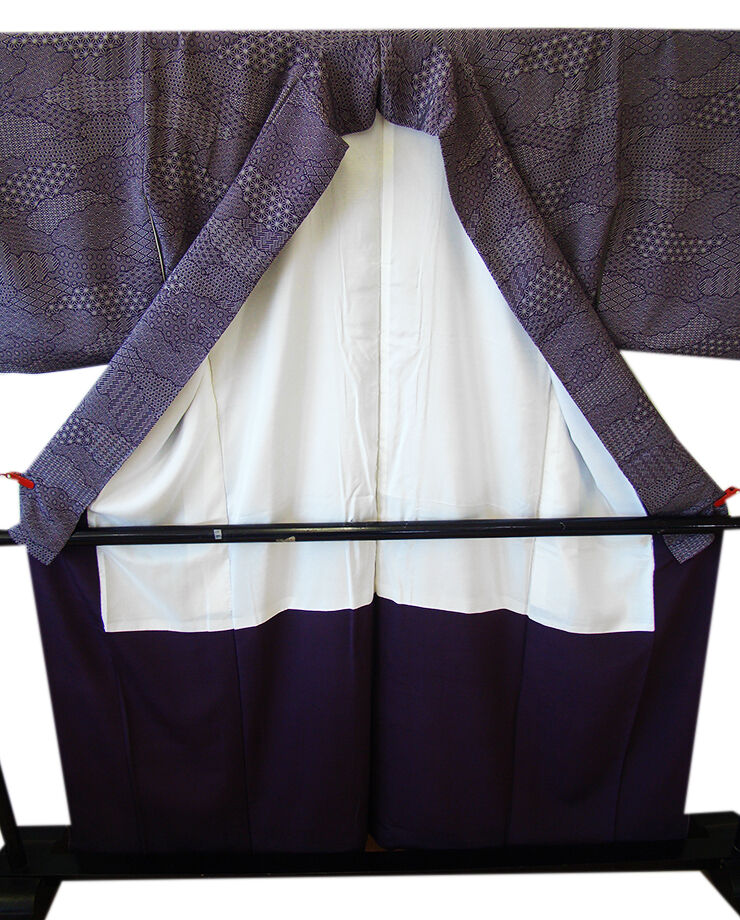 | 商品説明 | こちらのお品は「袷」でございますので、10月~5月までお召頂ければと思います。 とてもしっとりとした滑らかでさらりとした着心地も良い重めの一越地の生地、 渋い深紫色地に灰白色の麻の葉、七宝文、青海波等の寄せ柄の江戸小紋の染柄、 八掛は共色(正絹)、幅広い年代の方にお召頂けます。 |