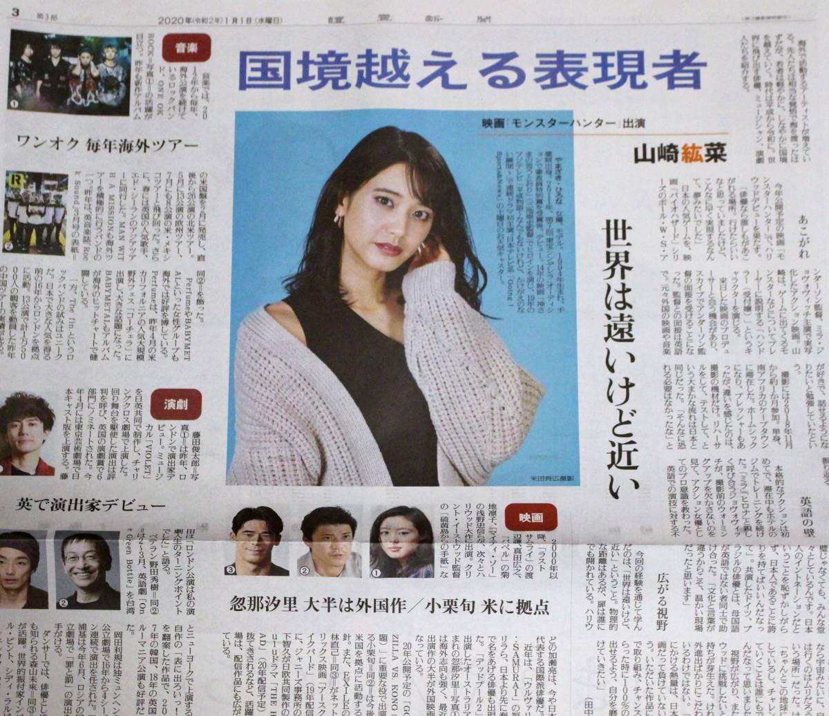 山崎紘菜さんの記事掲載の新聞1部です。 |