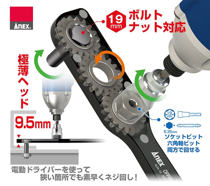 | 品 名 | アネックス 19mmボルト・ナット対応 オフセットアダプター |