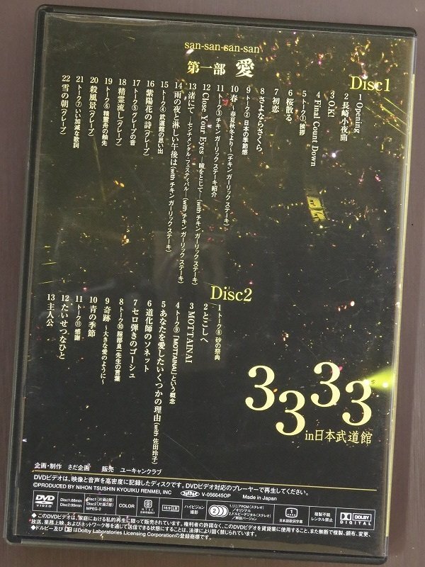 | ★☆(鹿児島発送)【中古品】 DVD #19 〔LIVE〕 3333 in 日本武道館 第一部 愛 / さだまさし ODV-20001/2 ☆★ | ||