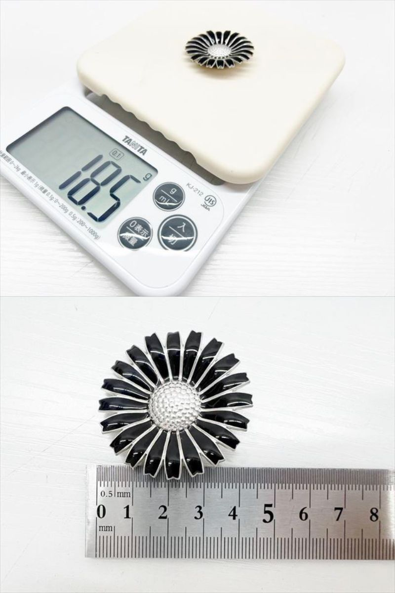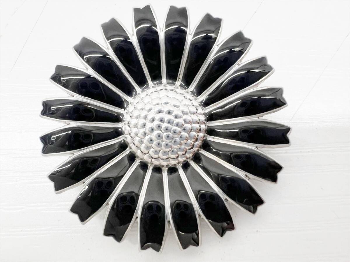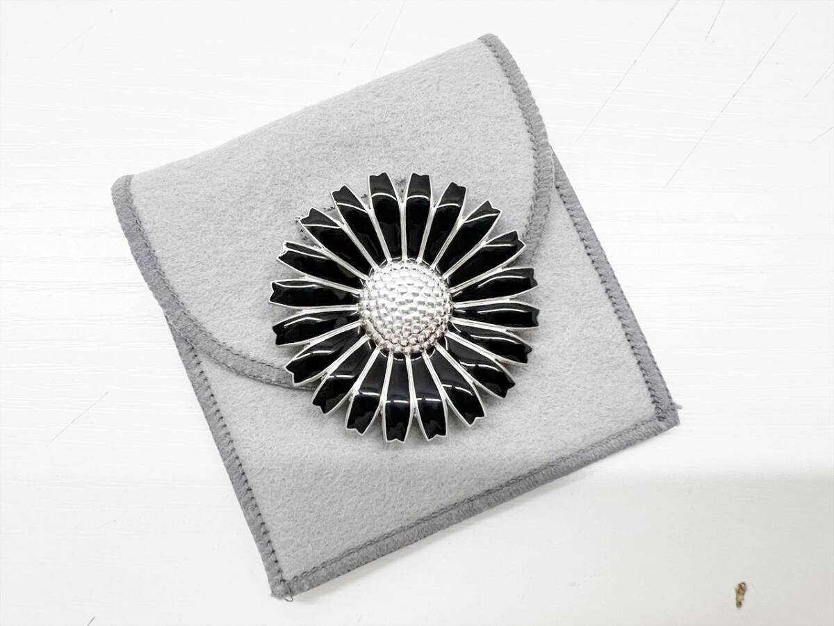 美品 Georg Jensen ジョージジェンセン デイジー フラワー ヘアゴム シュシュ 黒 925 シルバー