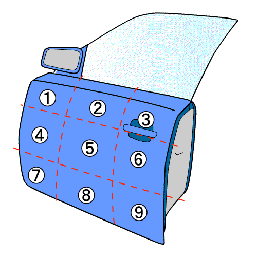 | [全体、サイトソウ、粗め][6、鈑金パテ、20×20cm PL][全体、へこみ、B 2×2-2×10cm 所々][6、塗装ハゲ、クリアハゲ 5×2cm] | |