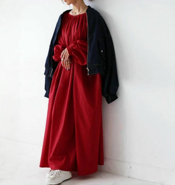 【F】 着丈126cm バスト160cm 肩幅68cm 袖丈45cm ■素材 : コットン ポリエステル |