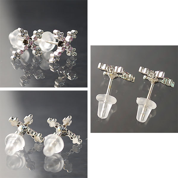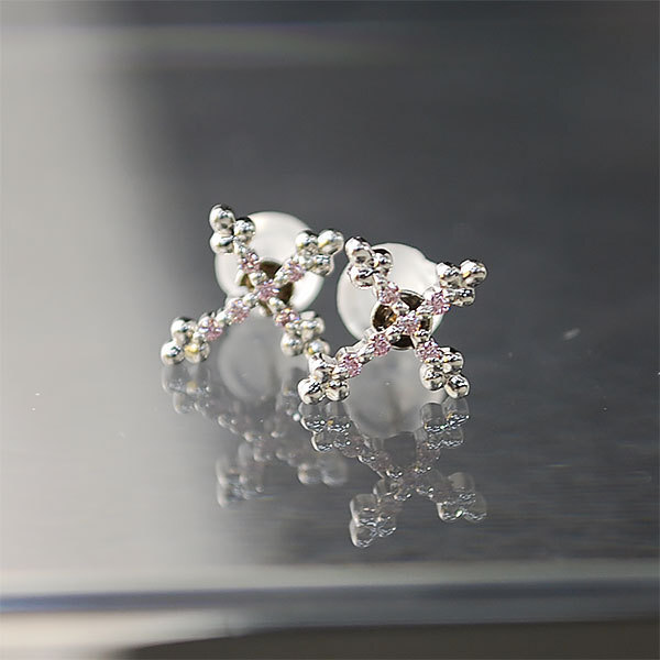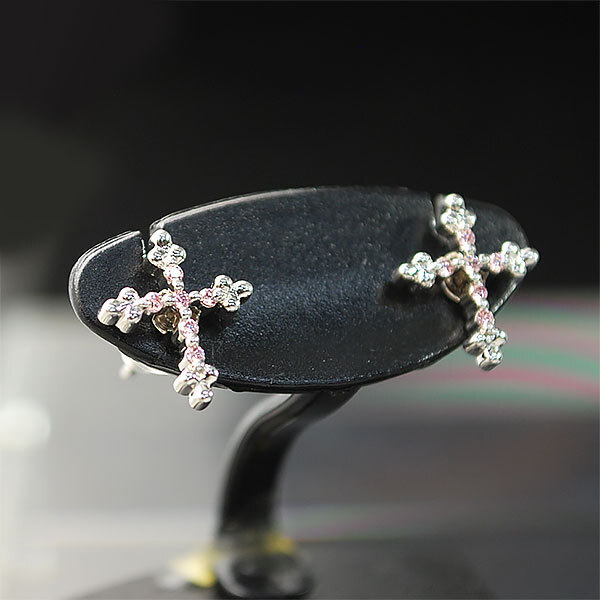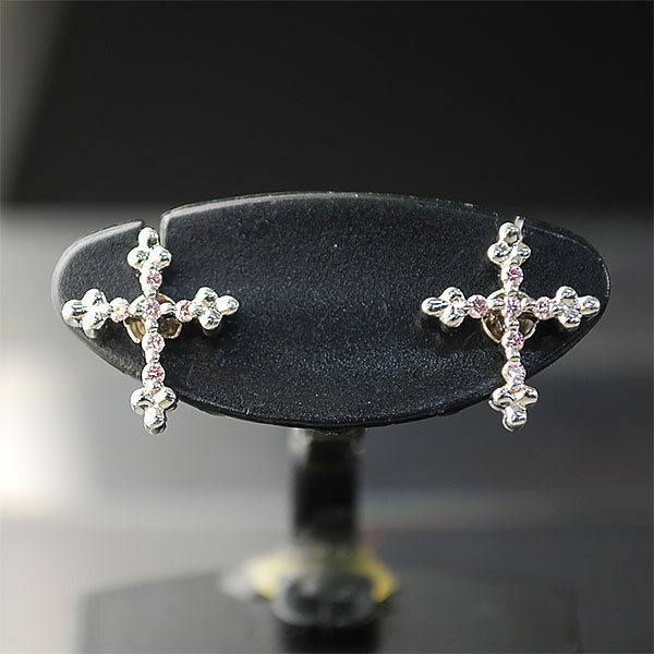 製品仕様十字架をピンクサファイアでデザインした オシャレなピアスです。