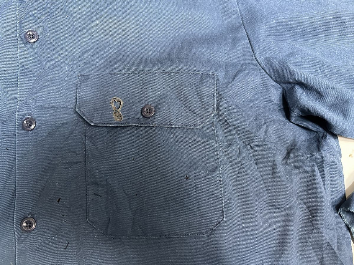 ●US USED ダメージあり US古着 Dickies ディッキーズ ワークシャツ 長袖 シャツ 無地 ポケット ネイビー紺【Lくらい】コットンポリ