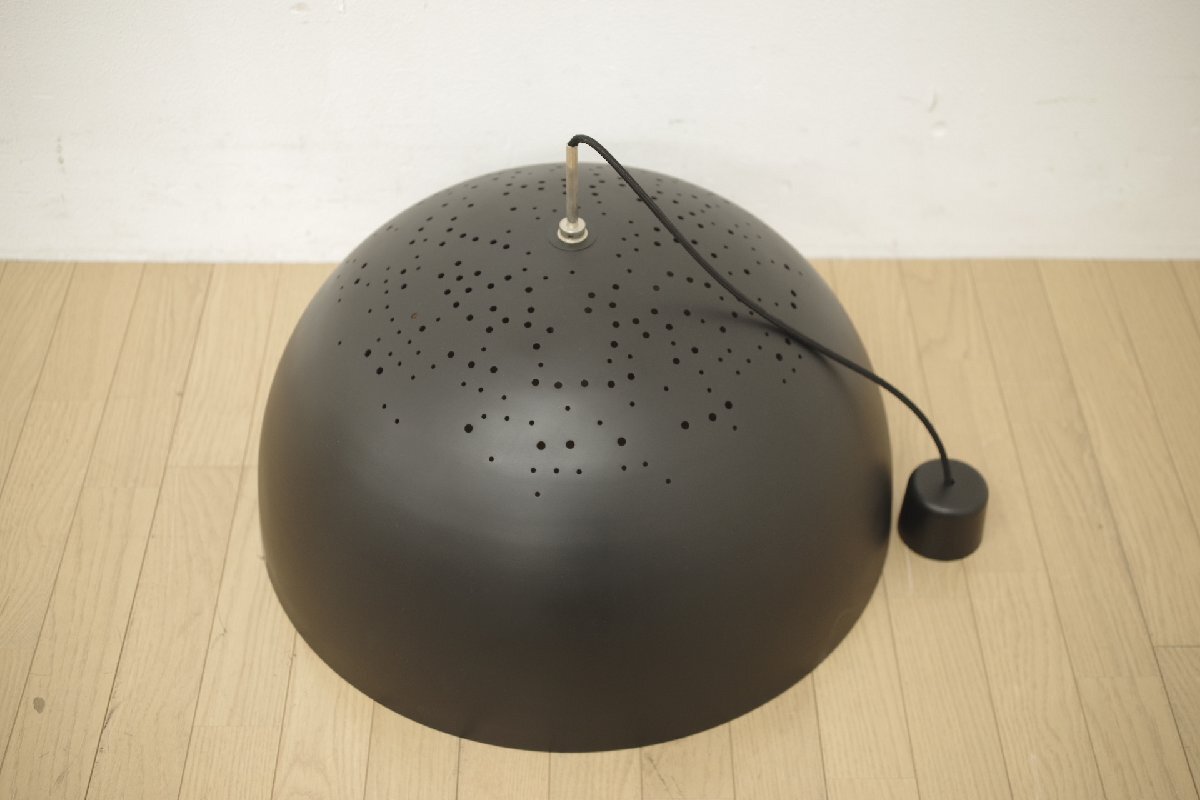 【商品説明】 メーターより シェードライトのご紹介です。 インドの工場の雇用や労働環境を守りながら、作り手と売り手が共に成長していくことを目的としたフェアトレードのプロジェクトによって誕生した作品。 オーソドックスなフォルムのシェード内面に施されたハンマー手打作業によるディンプルは反射する光を柔らかく広げてくれます。 外面上部に開けられたレースのようなパターン模様からわずかに漏れ出す光が周囲に優しさを醸し出します。 廃番となり、なかなか入手が難しいライトになります。 是非この機会にご検討ください。 【仕様】 ・電球:E26 普通ランプホワイト60W×1 ・消費電力:57W ・アルミ塗装仕上 内面ディンプル加工 ・引掛シーリング ・新品参考価格:92,400円 【コンディション】 モデルルーム展示品です。 ・電球は弊社が買取時に付属されていたものになりますので、電球が切れていた場合の保証はできかねます。 交換等は必要に応じてご落札者様で行っていただきますようお願いいたします。 目立つようなダメージはございませんので、まだまだご愛用いただけるお品物となっております。 ※清掃、撮影時に目立つ箇所は写真掲載しておりますが、同等の傷などがあるものとご了承ください。尚、商品ページの追加写真にて状態をご確認の上、ご検討いただけますようお願いいたします。 この他にも商品を多数出品しておりますので、こちらから御覧下さい。 | ||