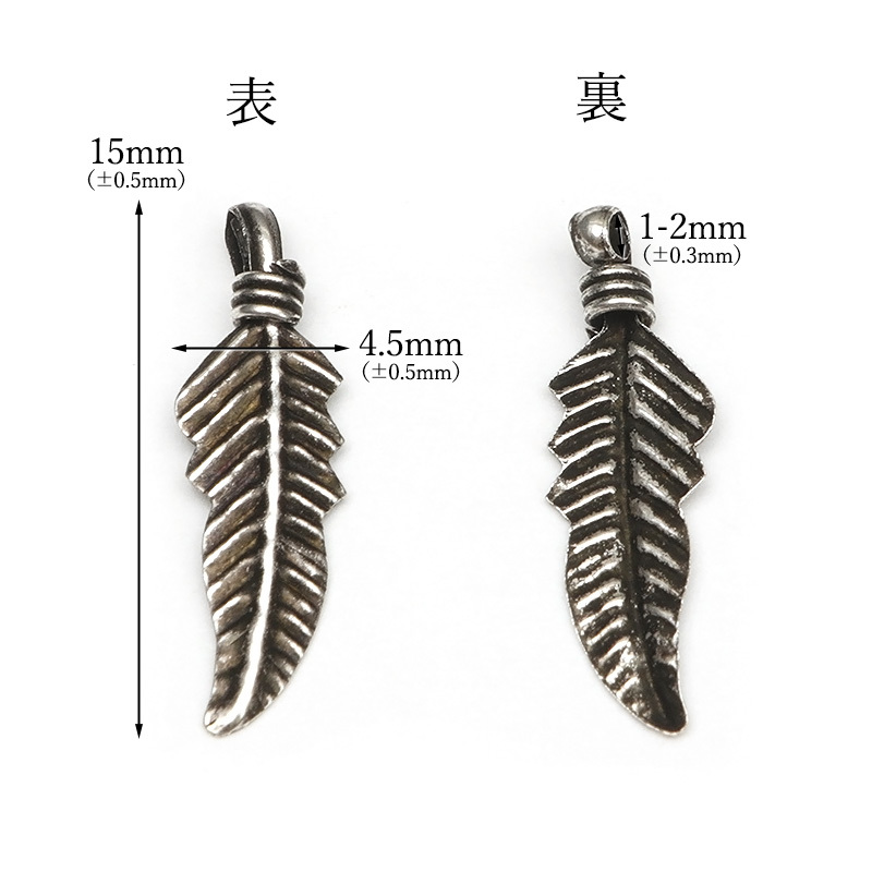 シルバー925(スターリングシルバー)のチャームのカン付きフェザーになります。