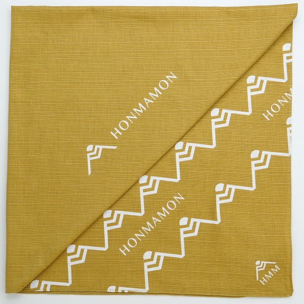 日本の伝統色である黄土色を基調とした当店オリジナルデザインの風呂敷。