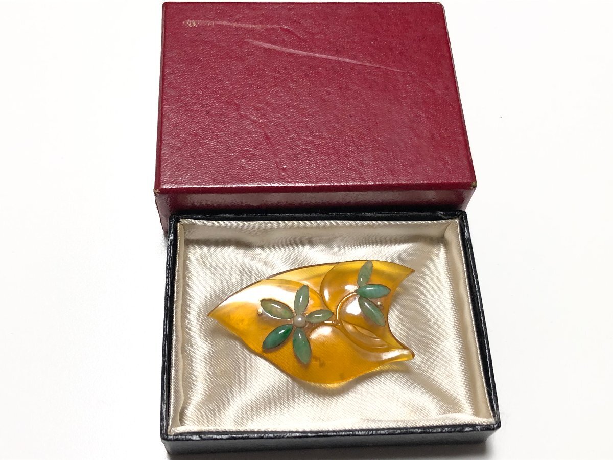 アンティークの白甲の本鼈甲、本翡翠、本真珠を使用した、花細工のブローチです。鼈甲部分に若干の小さな虫食いがあります。ケース付属です。| 出价者 | 信用 | 价格 | 时间 |