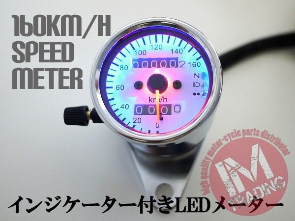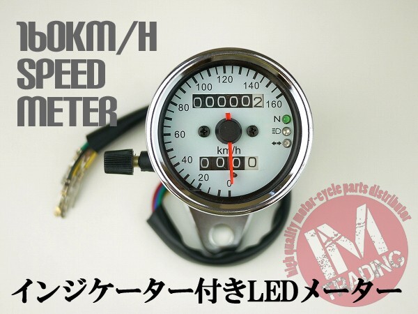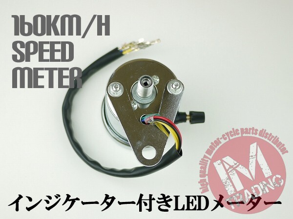 汎用の160km/h、3連LEDインジケーター、LEDバックライトつきスピードメーターです。