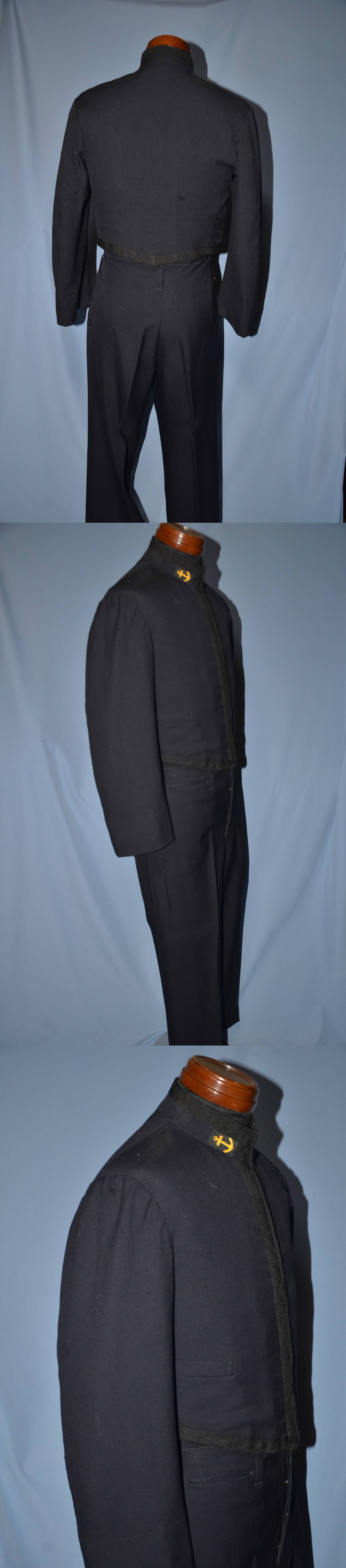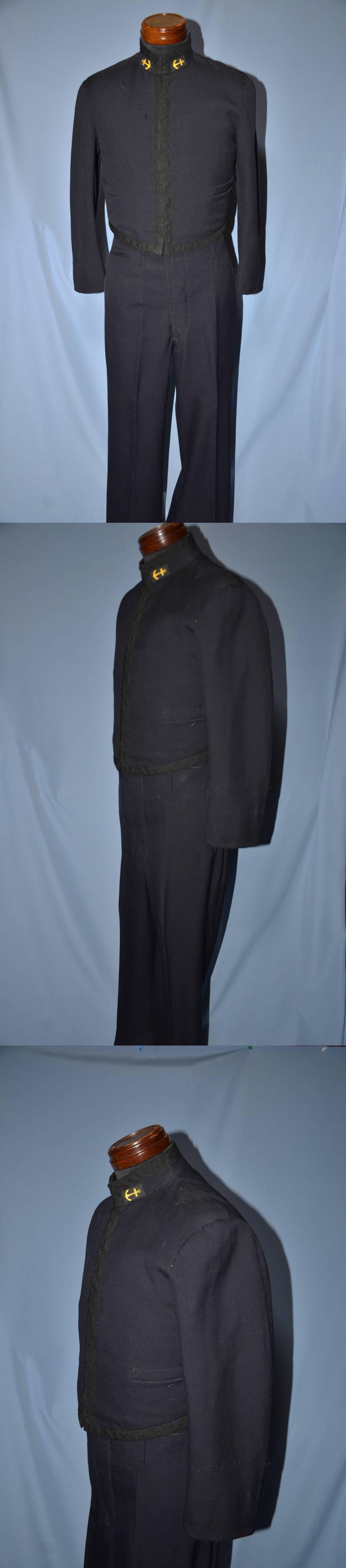 海軍兵学校一種服上衣袴です。菱形記名欄には、「75期 記名」があります。75期は昭和20年10月1日卒業予定で、8月15日の終戦で繰り上げ卒業証書が授与されました。76期と78期は、転校できるように修了証書が渡されました。この軍服を所持されていた方は、愛知県熱田高校出身で、旧布市健第五高等学校になります。上衣は、肩幅40センチ、袖上部53センチ、下部42センチ、襟上からの丈48センチ、脇43センチでする袴には菱形片布が無く、やや薄手になっています。洗濯タグが、「フイイ」と読めますが、福井の間違いでしょう。袴は戦後着用したので、記名欄は当時の方が外したのかもしれません。ウエスト84センチ、股下69センチです。上下はセットで出てきています。本文下の追加写真もご覧ください。ヤマト運輸宅急便で、全国一律700円でお送り致します。円滑にお届けするために、出荷はヤマト運輸に限らせていただいています。「新規」又は1桁の評価の方は、終了24時間以上前に御落札の意志を質問蘭からお入れください。意思表示が無かった場合は、他の御入札の方々に御迷惑をかける場合が多いので、落札後でも削除させていただきます。御入札中の方で、「新規」又は1桁評価の方の入札妨害を受けていると感じた方は、御質問蘭で御連絡下さい。回答しますとその方のIDが表記されますので、無回答で対処いたします。