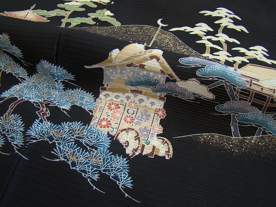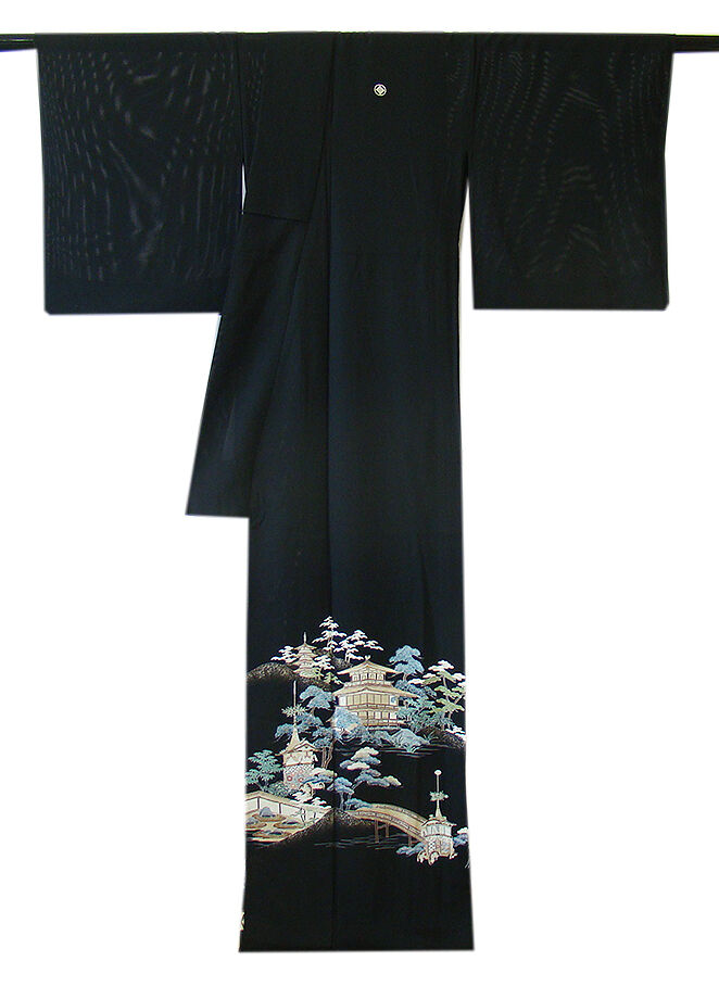 | 商品説明 | こちらのお品は夏物でございますので、7月~8月にお召頂ければと思います。 絽と言えば、紗と双璧を成す夏のお着物の生地で、その最大の魅力は絶妙の透かし加減です。 清涼感溢れる地の風を通すしなやかさは、夏に着物を着るという贅沢を 快適に楽しませてくれることでしょう。 とてもしなやかなさらっとした肌触り良い滑らかな上質な「駒絽」の生地、 黒色地に松や竹、山車、垣根、庭園柄の染柄に上品な金彩染、 「隅立て四つ目」の五ヶ紋、作家の落款入り、衿のみ比翼付き、 趣が匂い立つ着物姿を演出しております。 |