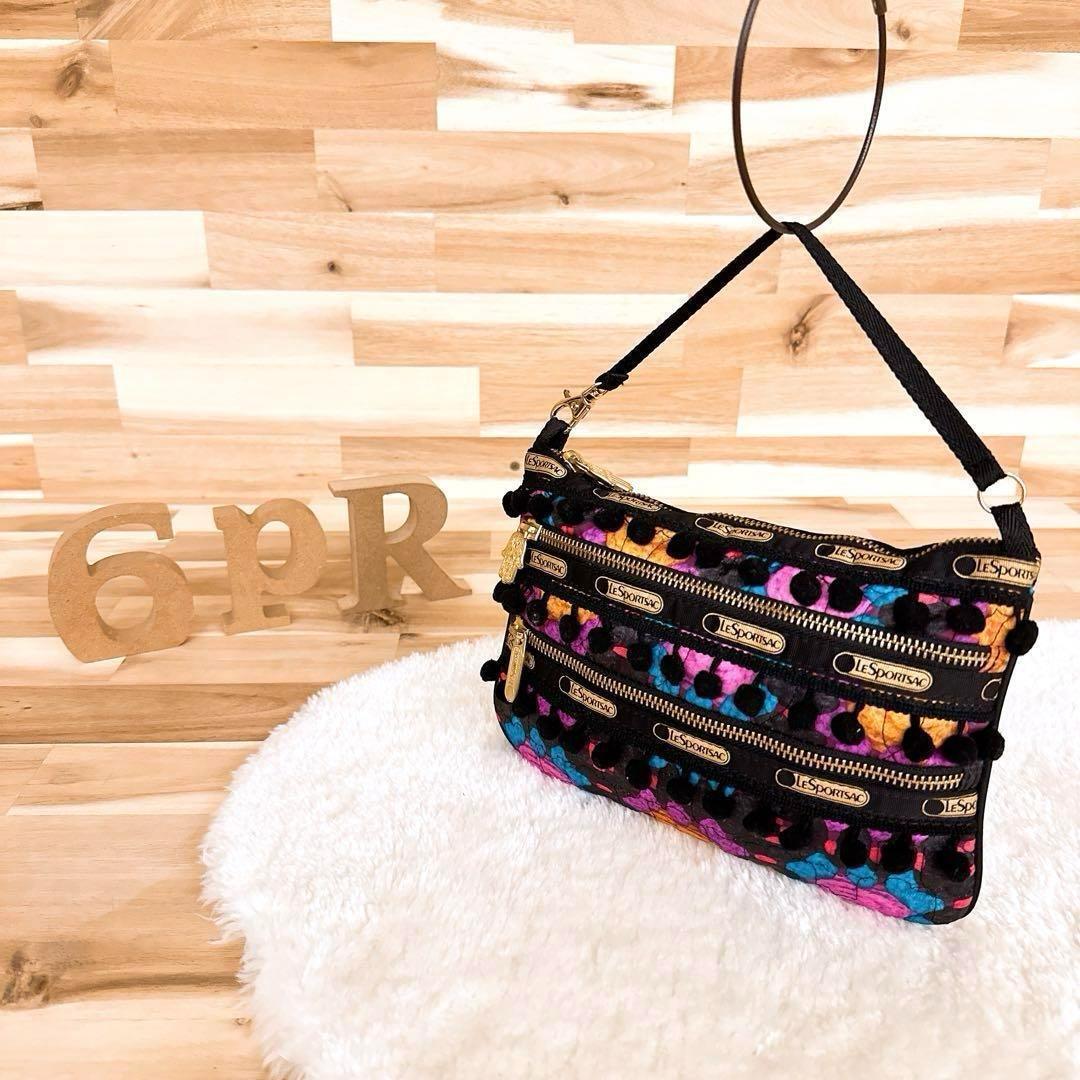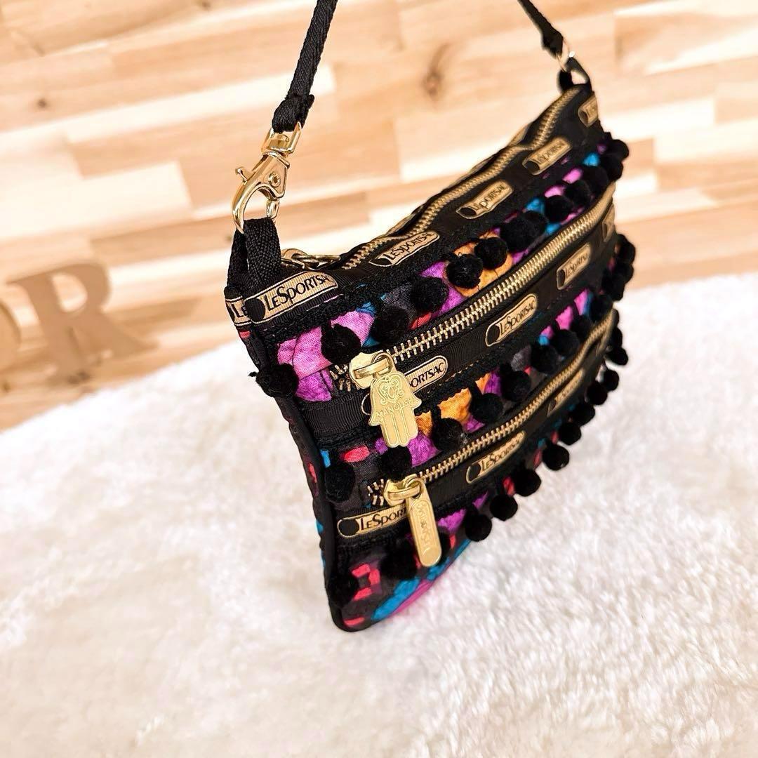 エキゾチックな雰囲気漂う華やかなカラーリング。小さなポンポンの装飾が立体的なアクセント。限定らしい特別感がうれしいLeSportsac × Manoushコラボのハンドバッグです。