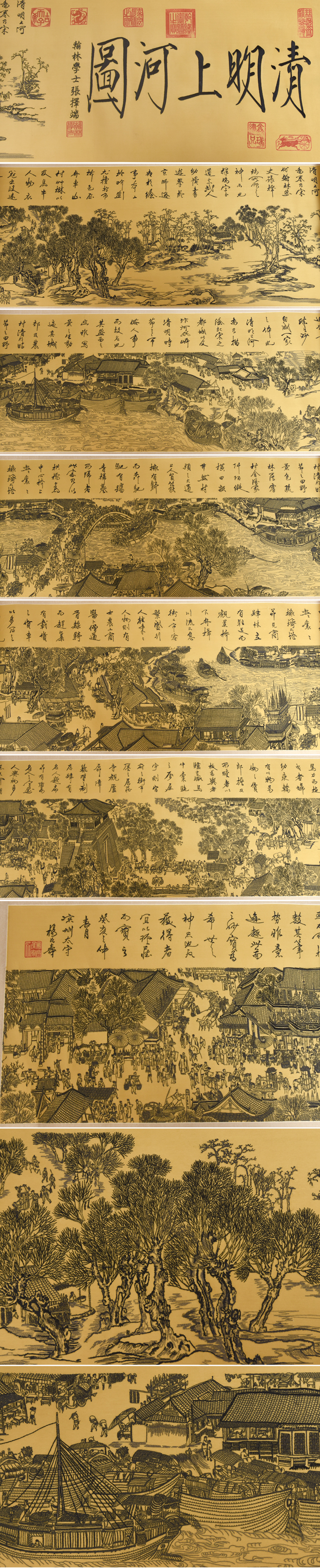 【複製】中国美術 清明上河図 絹本に刺繍 軸 巻物 全長5m 元箱 書画 絵画 張択端 |