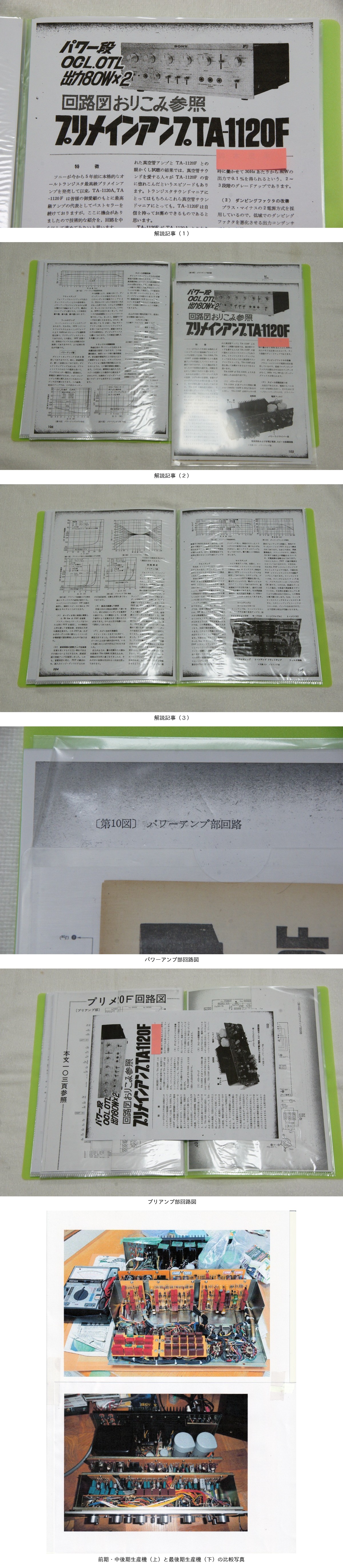 全て精細なコピーですが、ソニー製プリメインアンプ TA-1120Fの超レアな、下記の書面の出品です。