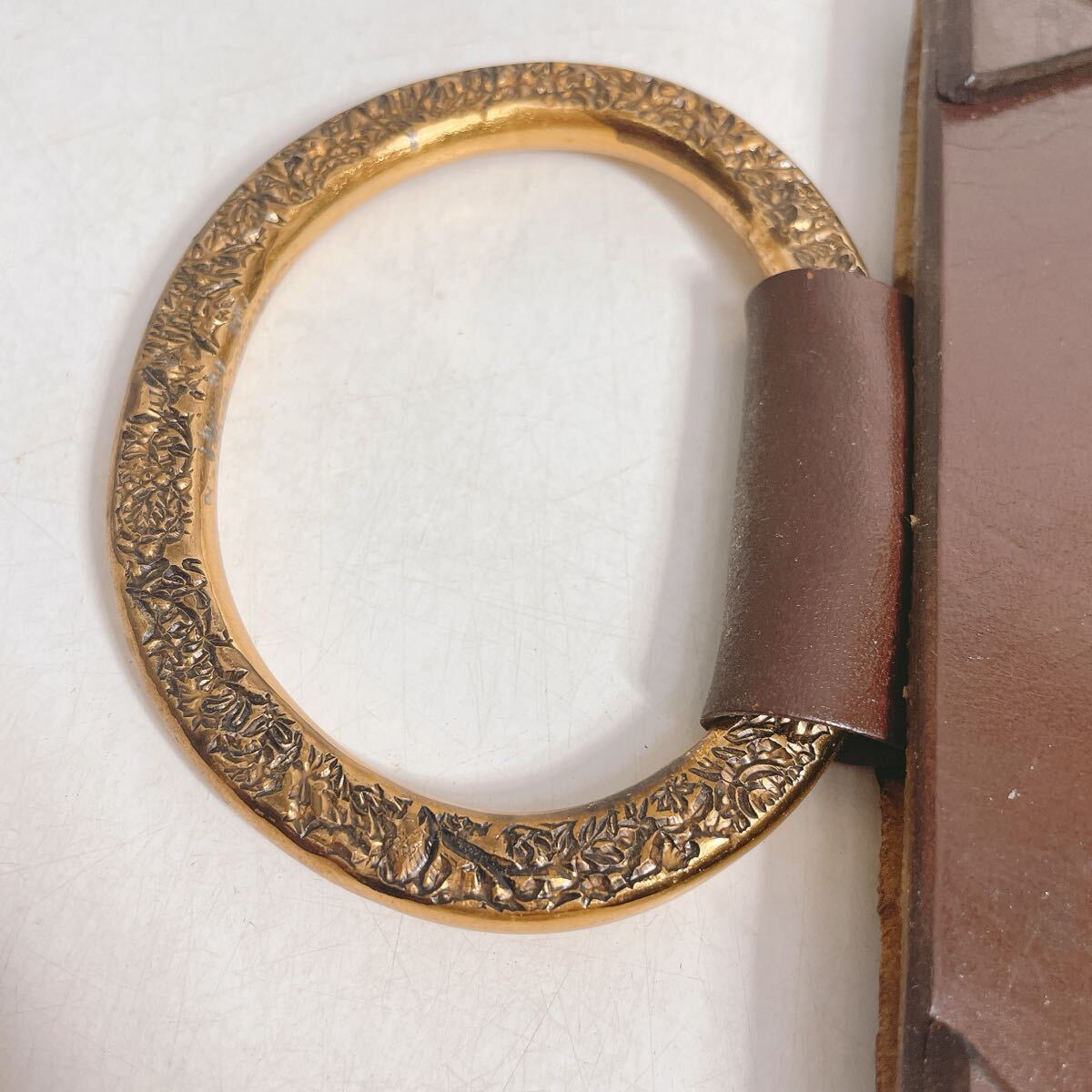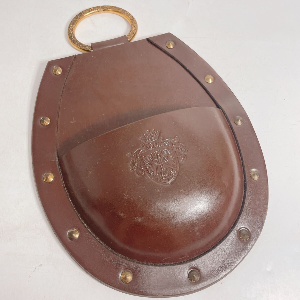 ◆鴻池製作所 馬蹄型 本革 レザー 皮革 レターラック 壁掛け 壁飾り ヴィンテージ アンティーク調 インテリア 刻印あり◆K4-K |