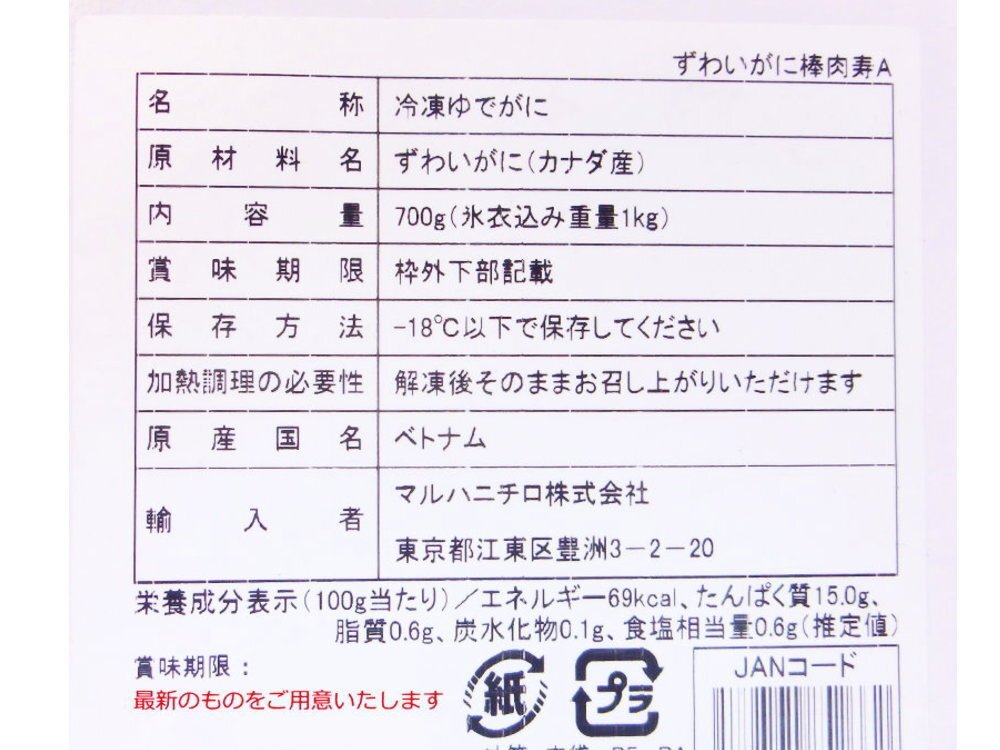本ずわい蟹をむき身のお得に楽しめる訳アリ品です。