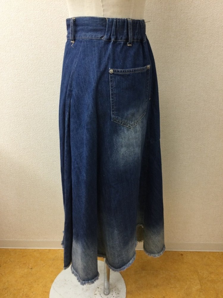 | 管理番号:10^133975 loaf 色むら加工デニム ロングスカート ウエストゴム 表示サイズ:ONE 実寸(参考)