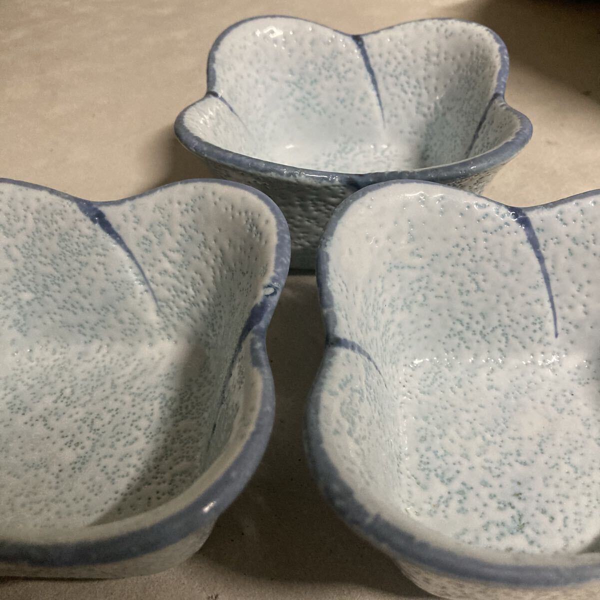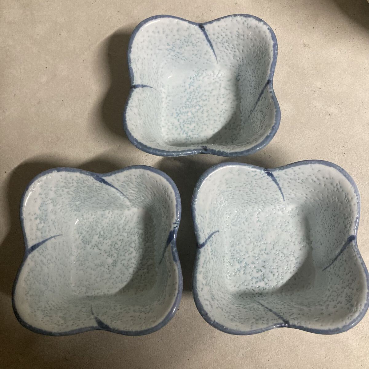 青と白の花びら型の陶器皿3個セット。| 出价者 | 信用 | 价格 | 时间 |