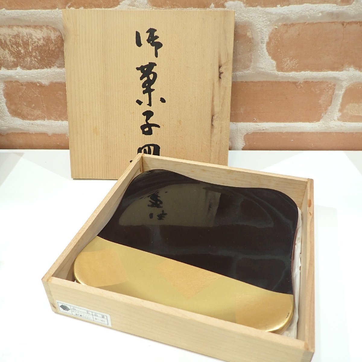 美品 金沢箔一 室町菓子皿 赤 黒 2客 金沢金銀箔工芸品 (約)高さ1.5cm、幅19cm |