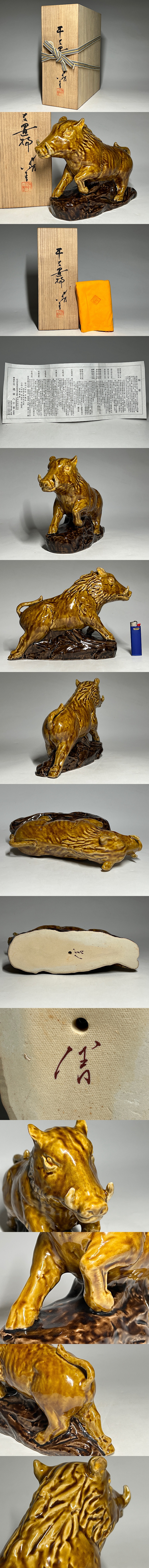 人間国宝 三代徳田八十吉(正彦)干支置物 イノシシ 共箱 共布 栞 ◆商品詳細 寸法(約):18.7x26x8(高×幅×奥行cm) ※寸法に若干の誤差が生じる場合もございます。 少し汚れがありますので、 ご承知の上入札お願いします。 状態等画像にてご確認の上ご入札よろしくお願いいたします。 ◆発送先等のご連絡とお支払いについて ※発送先等のご連絡 落札時から48時間以内にお願い致します。 ※お支払 かんたん決済の期限内にお願い致します。 ※複数点落札時にまとめて取引の場合(72時間内)に、 まとめて取引の取引手順(落札者方の操作)を参考にお願い致します。 梱包したサイズを測って、地方によって送料を決めますので、よろしくお願いします。 ◆掲載画像について ※画像は現物を撮影しておりますが、照度、遮光、モニターによっては実物と 色目が異なって見えることがありますのでご注意ください。掲載画像では確認 できない傷や汚れがある可能性もございます、あくまで 中古品であるということをご承知の上、御入札をお願い致します。 ◆補償について 商品到着後はすぐに状態の確認をお願い致します。 商品の破損等がございまし たら、箱や梱包材など全てそのままの状態で保存し、お早めにご連絡ください。 (到着日から一週間以上経過、梱包材の廃棄済み等の場合、保証は致しかねます のでご注意ください。) ◆返品について 思っていたイメージと違う、などのお客様主観による返品はお受けできません ので、予めご了承ください。ノークレーム、ノーリターンでお願いします。届 いた商品が商品説明と著しく異なる場合(寸法、キズ記載ミスなど)のみ承り ます。早めにご連絡ください。 ◆注意事項 当方の希望価格と隔たりがある場合は、終了前にやむなく取下げさせて頂く場 合がございます。 ※商品ご落札翌日から4日間以内にご連絡が取れない場合は、入札取消の処置を 取らさせていただく場合がございます。 ※評価の悪い方は取り消す場合がございます。 ※原則として当方の不備以外のキャンセル・返品・返金は受け付けておりません。 以上の点を予めご了承頂いた上で、入札・落札お願い致します。 ◆発送方法 ▼ゆうパック(補償あり/追跡あり) 梱包後のサイズ:~約80cm ※送料全国一律1200円 (但し北海道、沖縄、離島は+500円いただきます。) 発送元は静岡県となります。 ( 商品の組み合わせによっては同梱をお断りさせていただく場合があります。) ※大型商品について 郵便局の規定を超える商品の場合は、佐川急便またはヤマトでの発送となります。 |