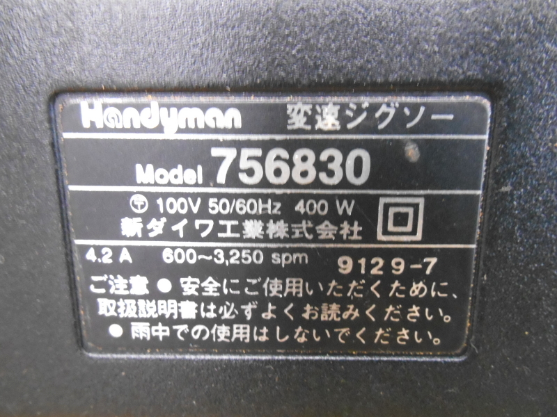 | 仕様 ●メーカー 新ダイワ/ハンディマン ●型式 756830 ●外形寸法 W70×D210×H180mm(本体のみ、突起物含む) ●電源 100V 50/60Hz ■ハンディマン製、変速ジグソーを激安価格にて提供いたしますので、この機会に是非よろしくお願いいたします。 ■消耗部品、消耗品に関してはノークレーム、ノーリターンでよろしくお願いいたします。 ■当方専門業者ではありませんので、細かな動作まではわかりかねますので、細かな点でのクレーム等はお受けいたしかねますので、御了承下さい。 ■当方本商品に対して専門知識がありませんので、専門知識を要する質問、動作にはお答えいたしかねますので、ご了承の上宜しくお願いいたします。 ■簡単な清掃も行っていますのでご検討宜しくお願い致します。 ■新品ではありませんので使用感や多少のキズ等あります。ご理解のうえ入札ください。コンディションに強いこだわりのある方はトラブルの原因となりますので、入札はお控え下さい。 ■TOP画像にあるものが全てです。※大きな商品や重い商品は、台車等に乗っていることや動作確認時に、当方所有の備品を使用して確認しますが、そちらは商品には含みませんのでご理解の程、お願い致します。 ■その他ご質問はお気軽にどうぞ。 | ||