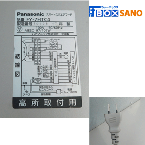 名 称 送料込み パナソニック換気扇 スマートスクエアフード FY-7HTC4 2017年製 中古 sano6449