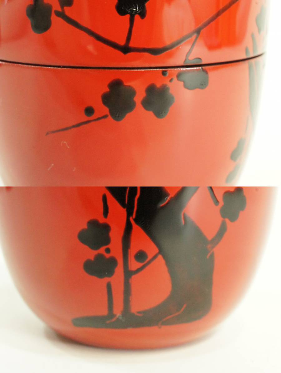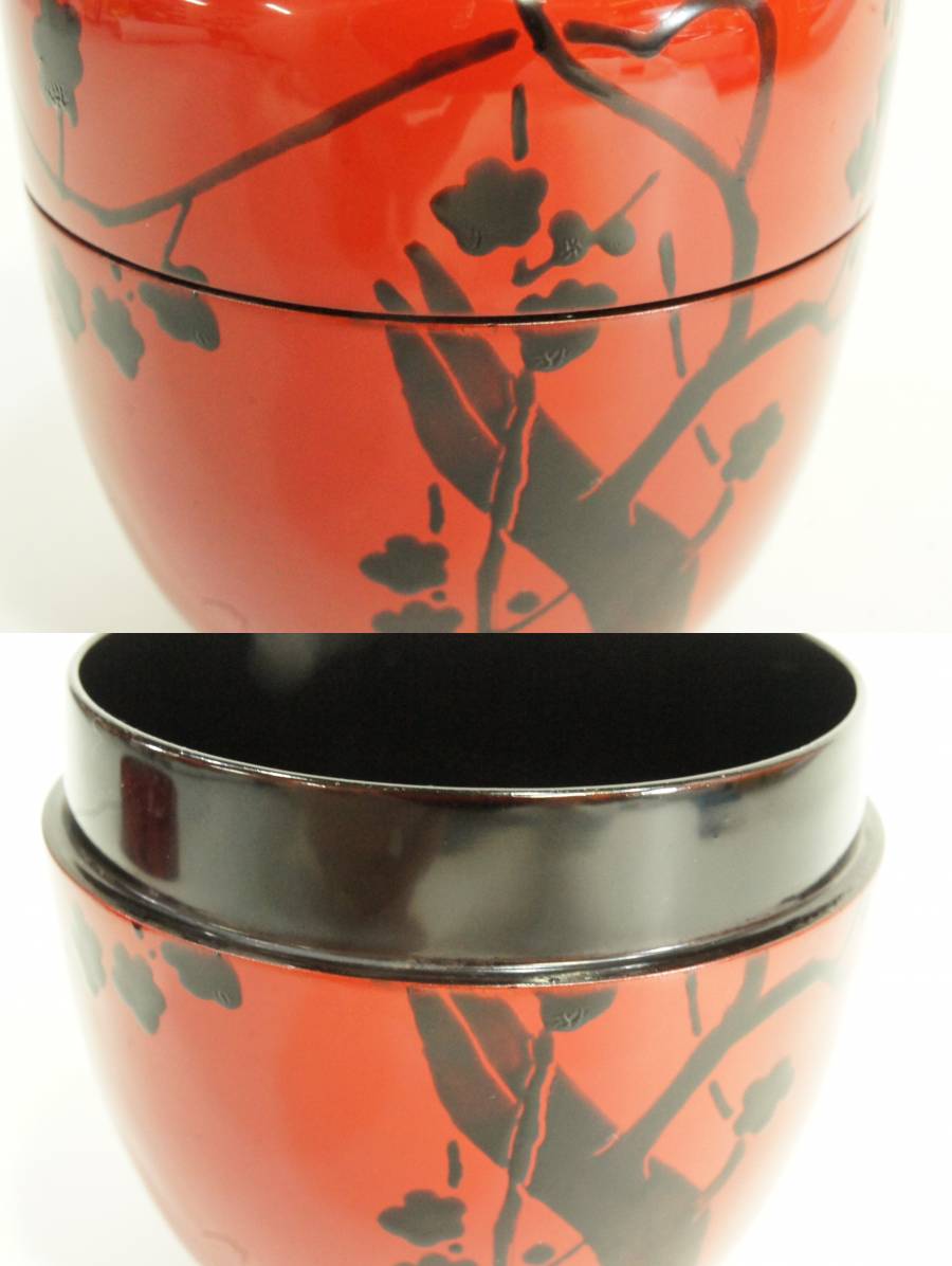●加賀蒔絵師 岩倉利慶 淡々斎好写梅月中棗 なつめ 銀彩 金彩 共布 状態良好 茶道具