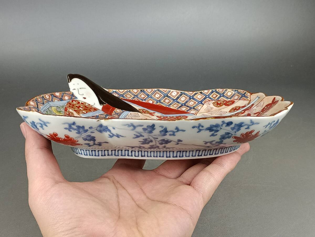 【偲】古伊万里 姫皿 色絵金彩 伝統工芸 幅約20cm 高さ約5㌢ 姫形 飾皿 木箱有 j-245| 出价者 | 信用 | 价格 | 时间 |
