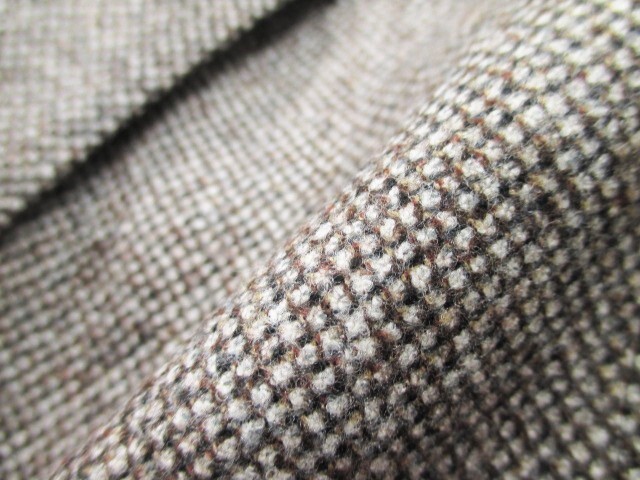 ファソナブルは、シンプルなものでもしっかりと生地感にこだわられている点も特徴的で、こちらの生地はバーズアイと呼ばれる細かく目のようなドットが並んだ生地で、更に近くでよく見ると違う色をまばらに配したような独特な色の使い方がされています。それにより、ありきたりでさらっとしたブラウンのジャケットとは違った表情があり、嫌みのない高級感があります