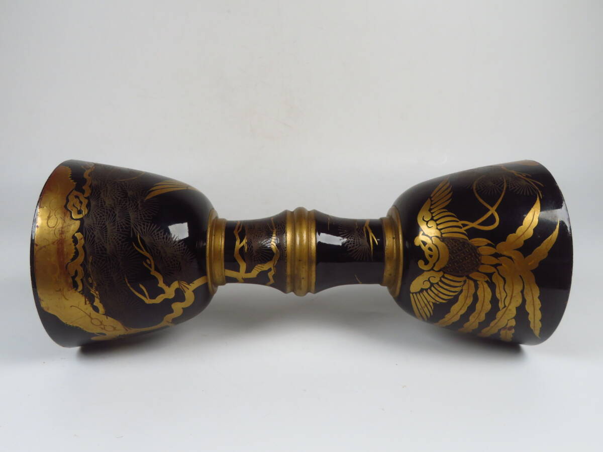 | 時代 和楽器 小鼓 金蒔絵 松 鳳凰 革 在銘 花押 大名道具 歌舞伎 能 狂言 骨董品 古美術品 希少品 胴全長27.5cm 胴重量633g【109】 | ||
