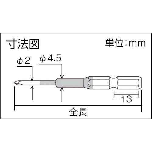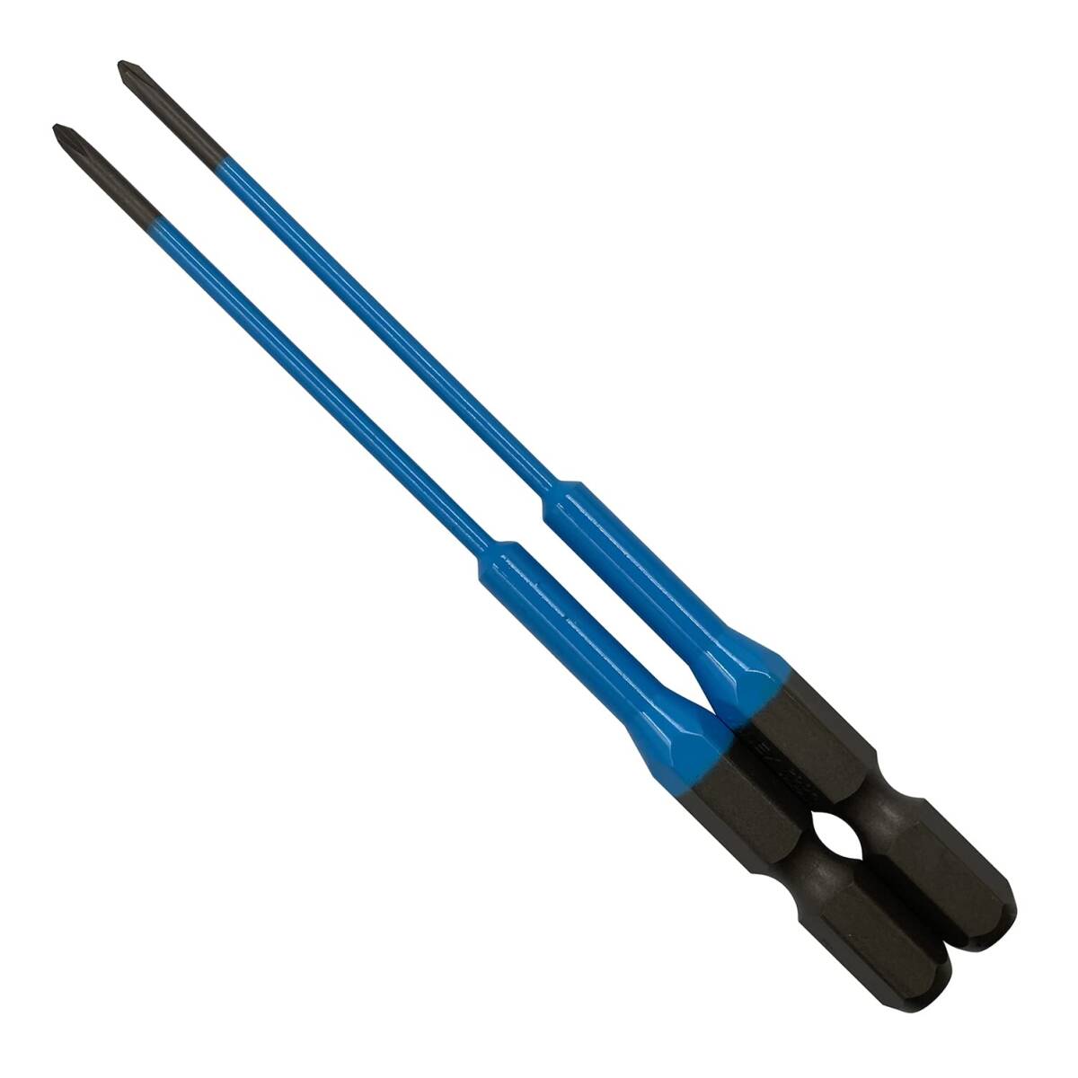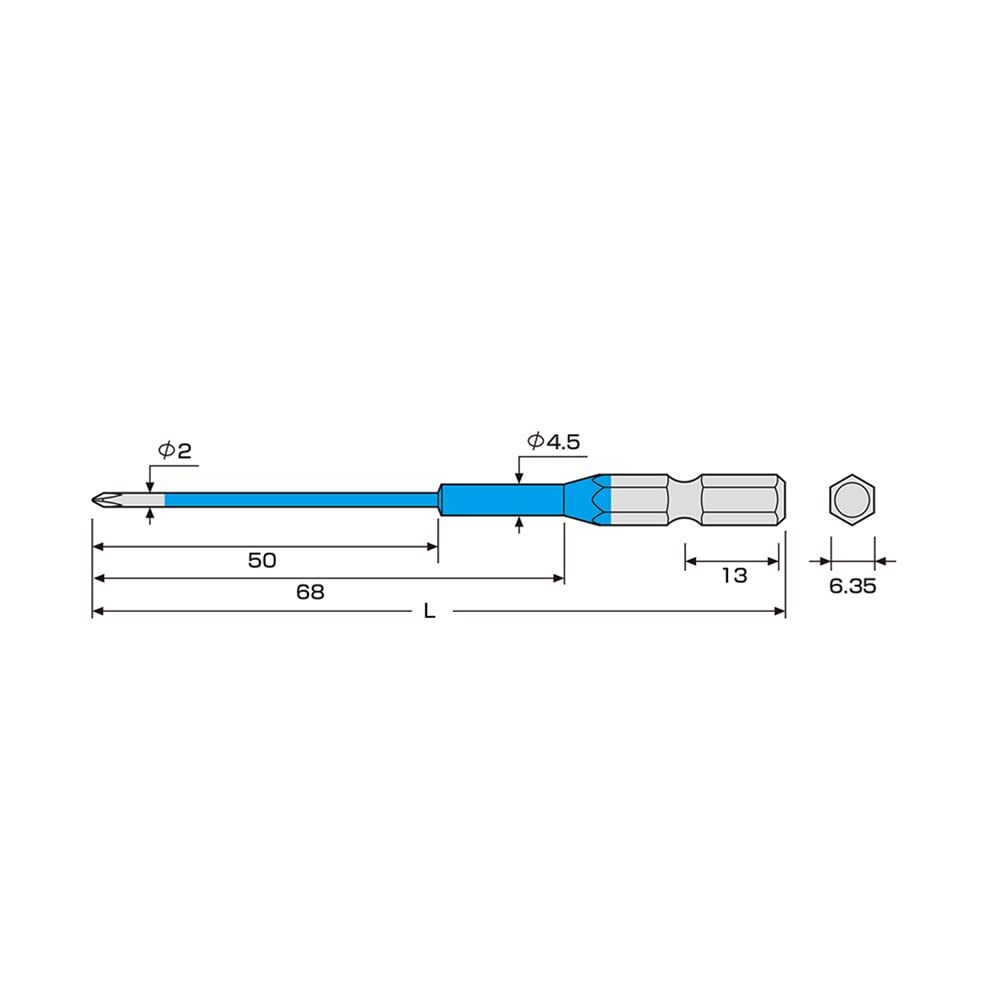 ●色で先端サイズの見分けが簡単 ●先端精度抜群でアンビルに影響のない両端非塗装 ●セット本数:2本 ●形状:段付 ●先端サイズ:プラス(+00) ●全長:100mm ●溝位置:13mm ●軸径:対辺6.35mm六角軸、先端軸径2mm丸軸 ●塗装色:水色 ●マグネット:なし ●包装:台紙・ブリスターパック