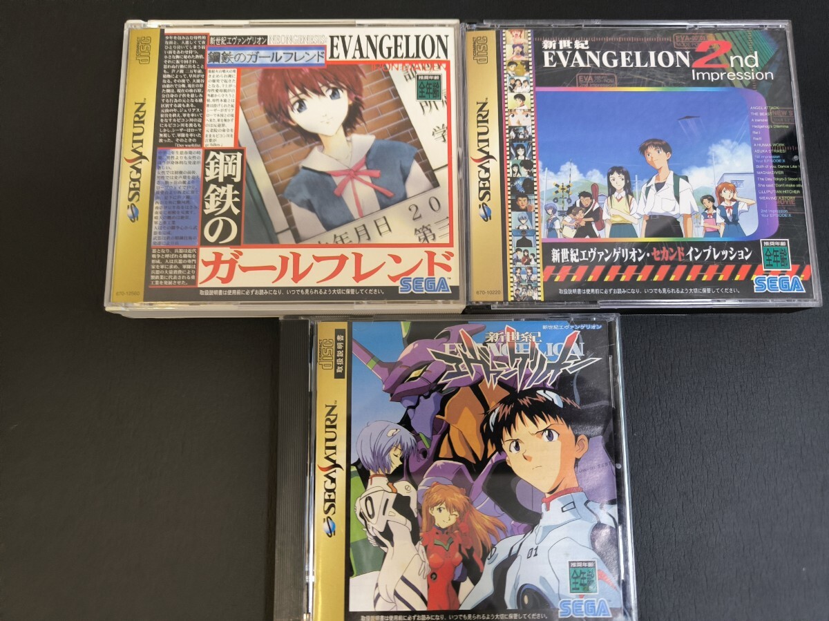 This listing includes three authentic Japanese Sega Saturn Evangelion titles and one bonus game.