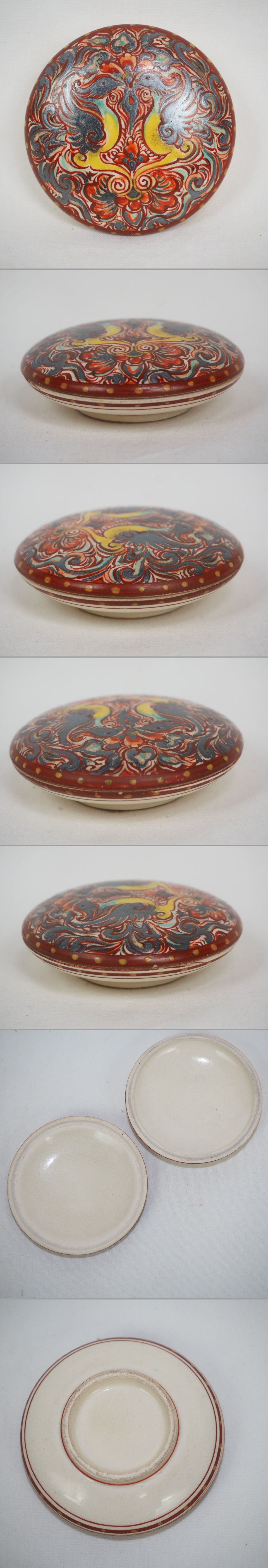 | 商品説明 | 高さ約 2.2cm 径約 6.5cm ご覧のように、とても古い銀彩鳳凰文香合です。深みのあり味わい、品格のある逸品です。状態はとてもよい、完品無傷です、詳しくは写真でご確認ください。 |