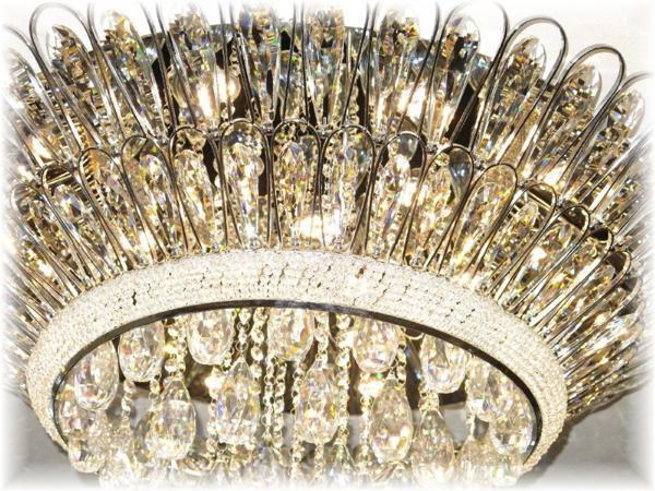 | 商品説明 | ![]() 【送料無料!】★超激安販売★新品・スワロフスキー風クリスタルシャンデリア ●LEDダウンライトを19灯(¥28500-相当)お付けいたしまして驚きのプライス! ●消費電力わずか95ワットで950ワットの明るさ! ●リモコン操作でさらに省エネ! リモコンも付属しており19灯全灯・消灯を含め8段階の切り替えが可能です 新品・スワロフスキー風クリスタルシャンデリア スワロフスキー風上質水晶ならではの最高の輝きを放つ新品クリスタルシャンデリア 添付画像では肉眼で見る本来のクリスタルの輝きをご確認いただけませんが、19灯のLEDライトが上質クリスタル水晶を通し光の屈折で光の持つ本来のカラーをかもし出しダイヤモンドのように輝きながらお部屋全体を照らします スタイルは飽きの来ないシンプルなデザインです またリモコンも付属しており全灯・消灯を含め8段階の切り替えが可能です リビング・店舗等に最適なゴージャスクリスタルシャンデリアを是非この機会に! 付属電球・・・暖色LEDライト19個(明るさ50ワット消費電力5ワット) 白色LEDがご希望の場合落札後ご連絡お願い致します 商品画像は暖色LEDライトを装着し撮影しております 電球の交換は簡易に取り外し可能です 調光ご希望の場合は調光対応LED(1個¥200-アップ)が必要です サイズ・直径約92cm 高さ約40cm 重量約24キロです ![]() |