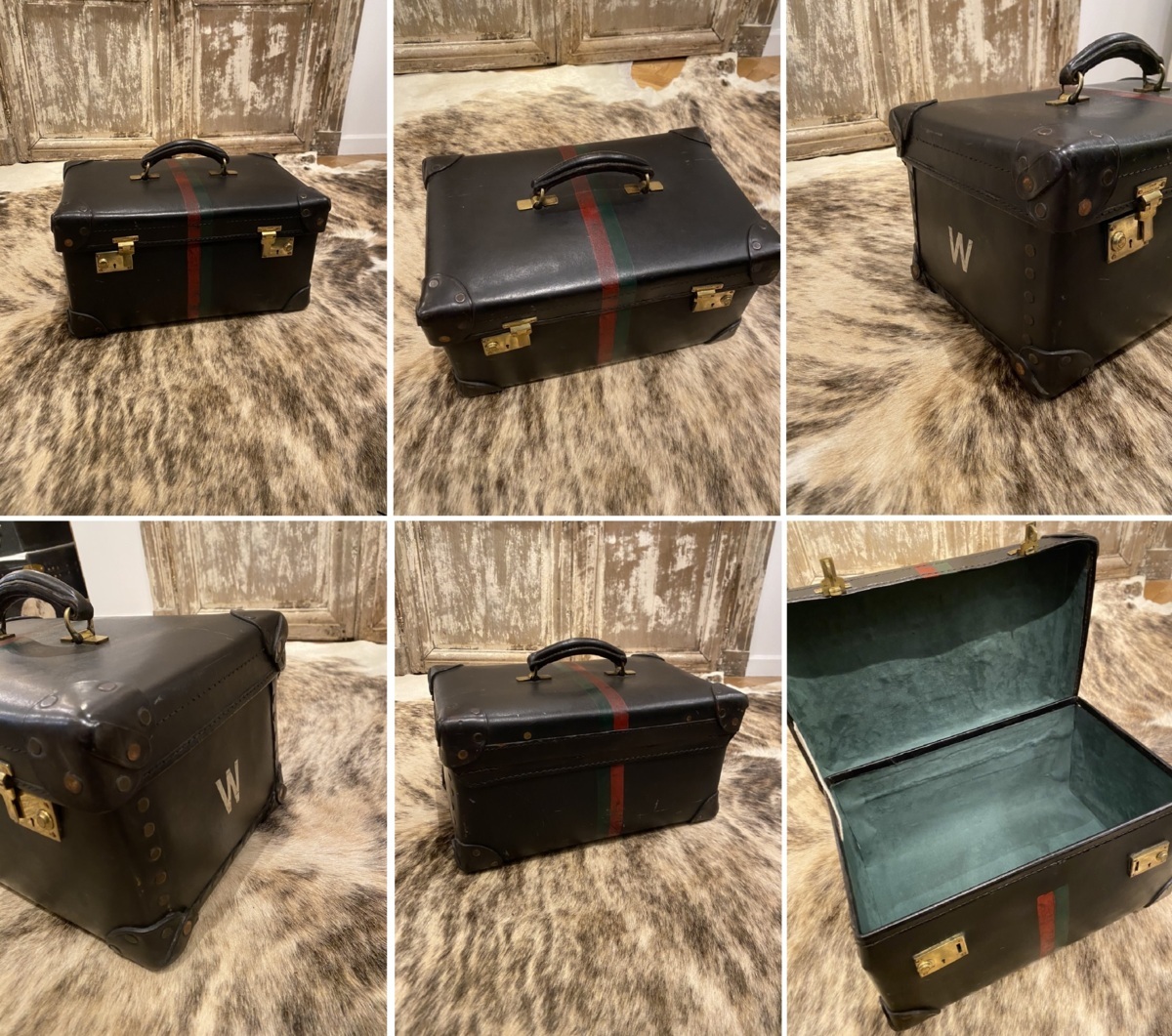 内貼りはグリーン系カラー、ブラックをベースにレッドとグリーンカラーのライン、イニシャル入り。