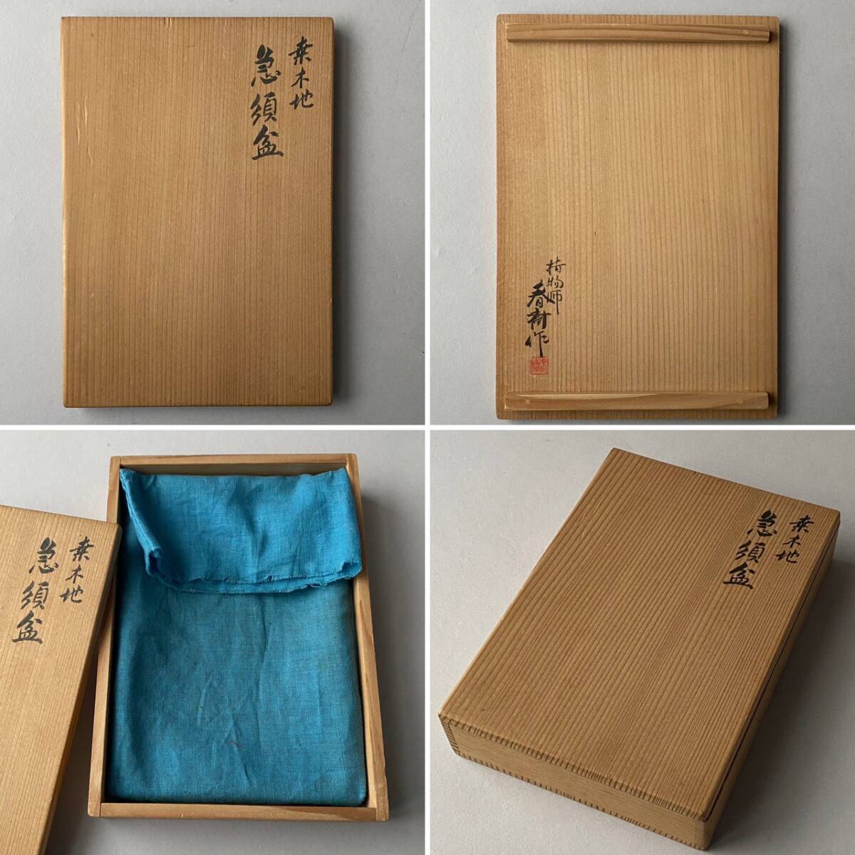 | 商品説明 | この度は数あるオークションからご覧いただき、ありがとうございます。 指物師 春斎(今橋春斎)作 「桑木地 急須盆」 共箱 共布付き 煎茶道具 です。 ■商品説明■ 長さ16.7㎝と小盆ながら、桑材の波紋のような杢目、縁は曲線を描く羽反で立ち上がり、四隅に付けられた低い脚など、指物師の技量を感じる、造りの良いお品物かと思われます。 ■サイズ(約)■ 横幅16.7㎝ 奥行11㎝ 高さ1.6㎝ ■商品状態■ こちらは古い物となり、商品状態を損なわぬ様、簡易清掃にて出品しております。 大きく使用・美観を損なう状態ではない物と思われますが、四隅一箇所にややスキがあるように思われます。 ほか時代・保管・使用に伴うスレ、小傷、落としきれない汚れ等あるものとご承知おきください。 詳細な状態につきましては画像にてご判断頂きご入札をお願い致します。 ※下記、発送詳細・支払い方法・その他、注意事項をご一読ください。 |
