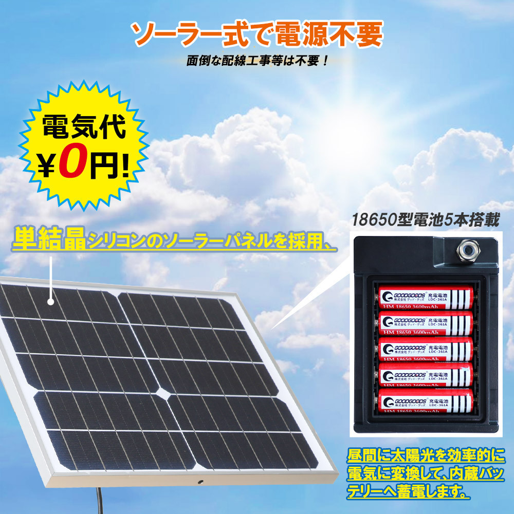 | セット内容 | LEDライトTK-G5AL、ソーラーパネルTYH-5JB、18650型充電池(品番:LDC-361A)*5本、取扱説明書、保証書 | ||