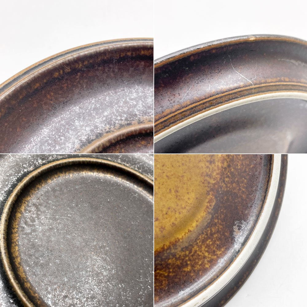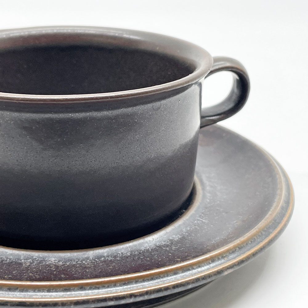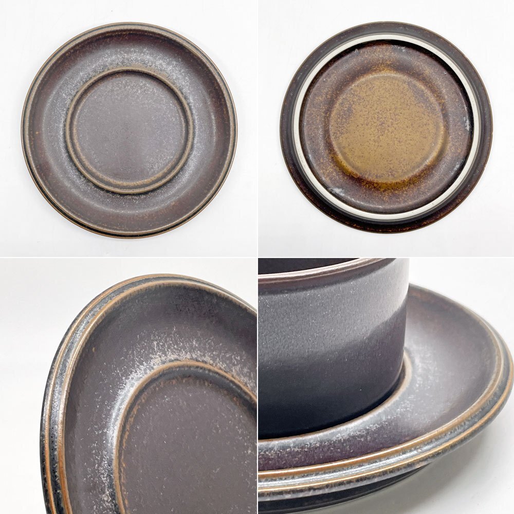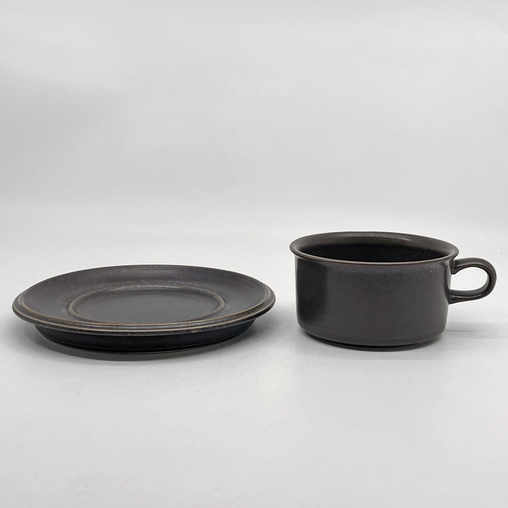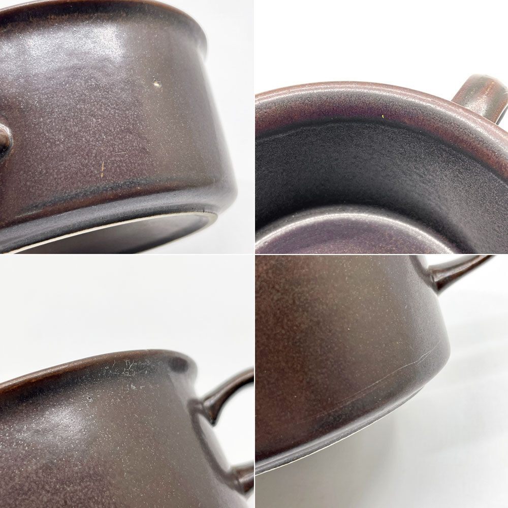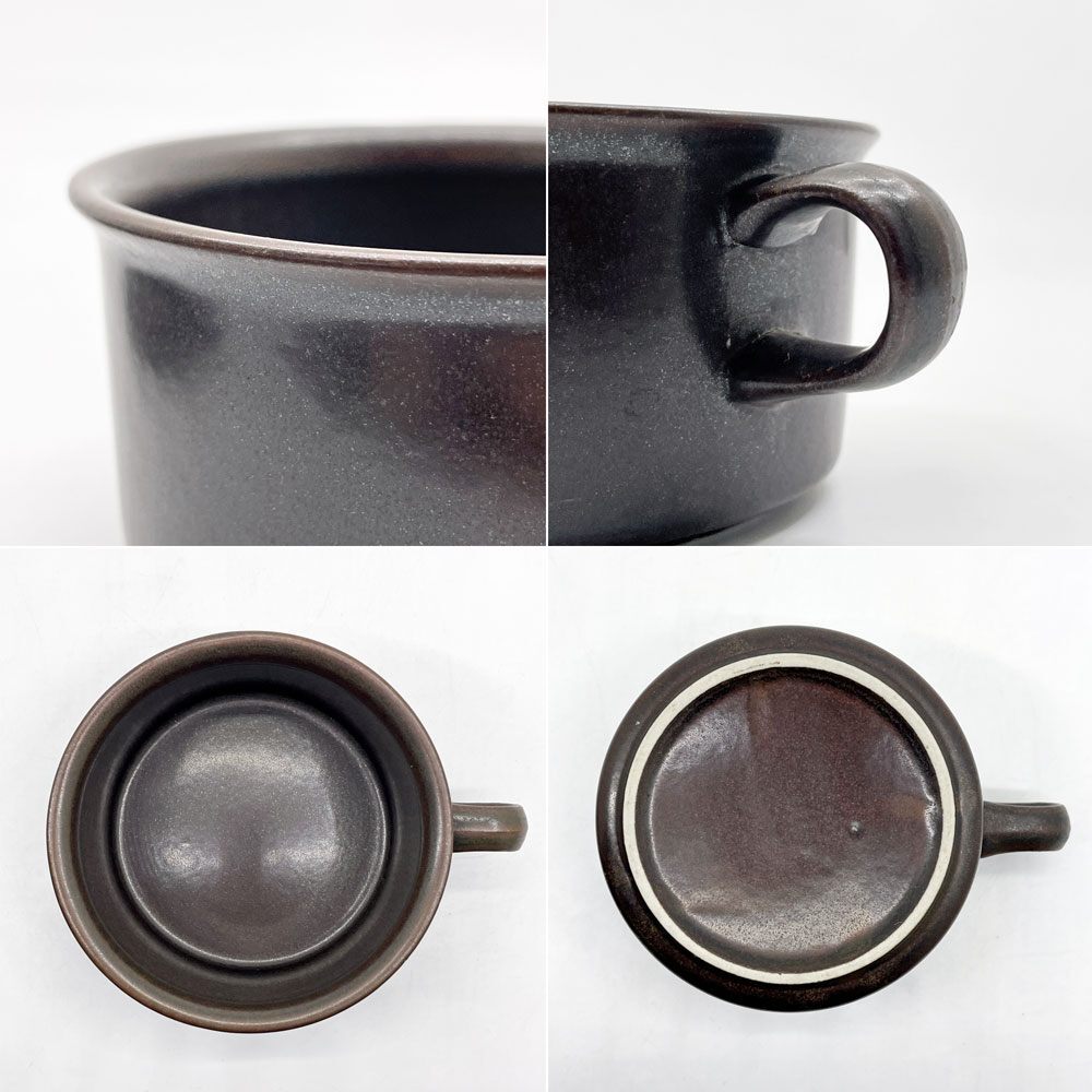 | コメント | 北欧食器を代表するフィンランドの老舗陶器ブランド”ARABIA アラビア”より、1960-90年まで製造されていた人気シリーズ 「ルスカ Ruska」のティーカップ&ソーサーが入荷しました。 フィンランド語で紅葉を意味するルスカシリーズのデザインを手掛けたのは、フィンランドの陶磁器デザイナーであるウラ・プロコッペ。 特殊な釉薬を使うことで生まれる風合いは1つ1つ異なり、深い茶色とマットな質感は和洋問わず様々なテイストのテーブルウェアと併せて頂けます。 口径10cmとたっぷりサイズですが把手は華奢で持ちやすく、ソーサーと当たることで鳴る音もリラックスタイムを彩ってくれそうです。 同じくルスカシリーズのコーヒーポットと併せていかがでしょうか。 ※当ショップは、主にリサイクル品を取り扱っております。基本的にUSED品である事をご理解頂き、ご入札をご検討下さいませ。 |