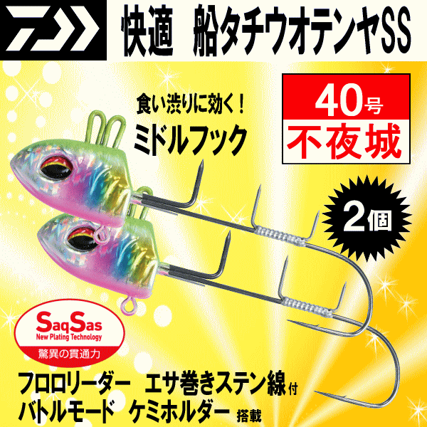 | 商品名 :快適船タチウオテンヤSS MH(ミドルフック) 不夜城 40号 2個(新品未開封 商品代引不可) ノーマル&バトルモードで攻めろ!SaqSasフックと重心変更機能搭載の船タチウオテンヤ 不夜城はジグを思わせる独特のカラーとミドルフックが決め手!釣果UP間違いなし! ・「快適船タチウオテンヤSS」は、現在考えられる全ての要素を盛り込んだ新兵器。 ・ハリはサクサスを使用して抜群の掛かりを実現しています。 ・ハリ先を長めに研いであるので、軽いアワセでも掛かる! ・画期的な機能も搭載。アイを2箇所にすることで攻め方の変更が可能。後ろ側がノーマルモードで、前側がバトルモード。ノーマルモードがスロー巻きした時に水中で水平姿勢になるのに対し、バトルモードはテンヤの姿勢が若干立ち気味になり、ハリ先がタチウオに近づくため、活性がよい時はさらに掛かりやすくなります。 ・あくまでも個人で使用した感想ですが、あたりが確実に増えたことと、食い渋りの時になど自分だけにあたりがある場面が多かったです。 ・魚がいるにもかかわらず通常のテンヤではあたりが出にくい時に効果を発揮します。 ■製品情報 【ミドルフック(MH)】 ノーマルと早掛けSPの中間サイズのミドルフックを採用し、状況を選ばすオールラウンドに使え、即掛けはもちろん、昨今のじっくりテンヤを追わせて食わせ、掛けへ持ち込む釣法にも最適です。 【驚異の貫通力でチャンスを逃さない“SaqSas(サクサス)】 ・テンヤのタチウオはエサ釣りとルアー釣りの両方の側面を持っていますが、食わせるよりも引っ掛ける要素の強い釣りです。つまりハリの掛かりの良さが釣果を左右します。 ・ 従来のメッキ処理では実現できなかった驚きの貫通力を持つ表面処理テクノロジー。 ・ハリの表面にフッ素系特殊プレーティング加工を施すことで、刺さり性能は従来の塗装ハリに比べて最大40%(平均約20%)アップ(当社比)。 ・今まで合わせきれなかった小さなアタリやショートバイトも逃さずキャッチ。今までのハリと一味も二味も違う「サクッと刺さる」感覚は、一度体感すると忘れがたいものとなるはず。なお、非常によく刺さるハリとなっているため、取り扱い時にはこれまで以上に注意して下さい。 ■付属品 ・フロロリーダー ・エサ巻きステン線 |