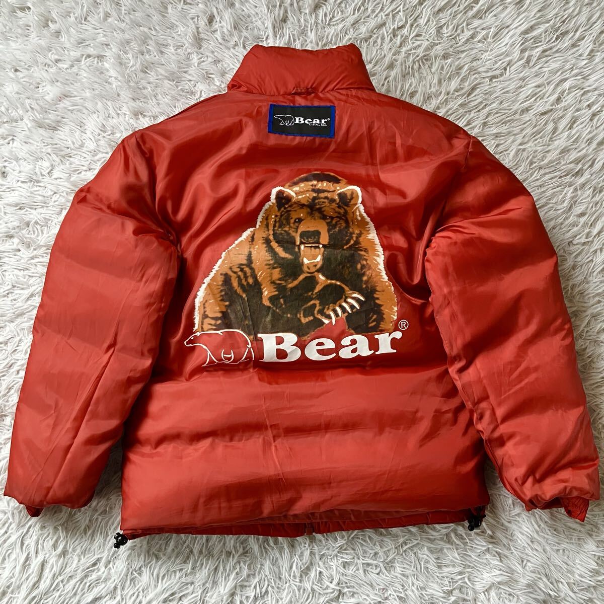 送料無料 bear ベア 90s ダウンジャケット リバーシブル ビッグロゴ レッド 古着 3852